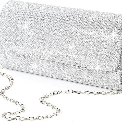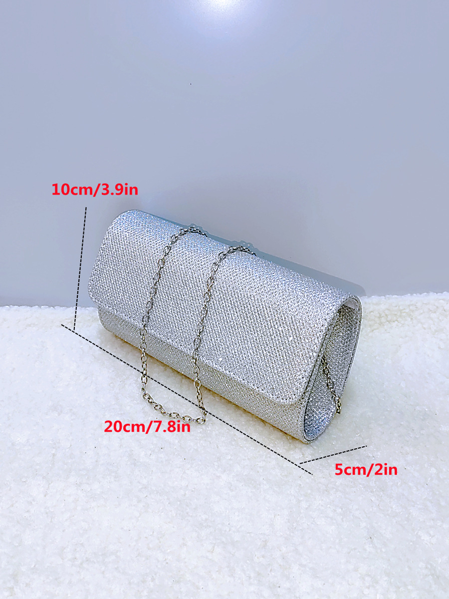 女士晚宴包手拿包女士闪亮派对手提包婚礼包前翻盖带磁性纽扣封口