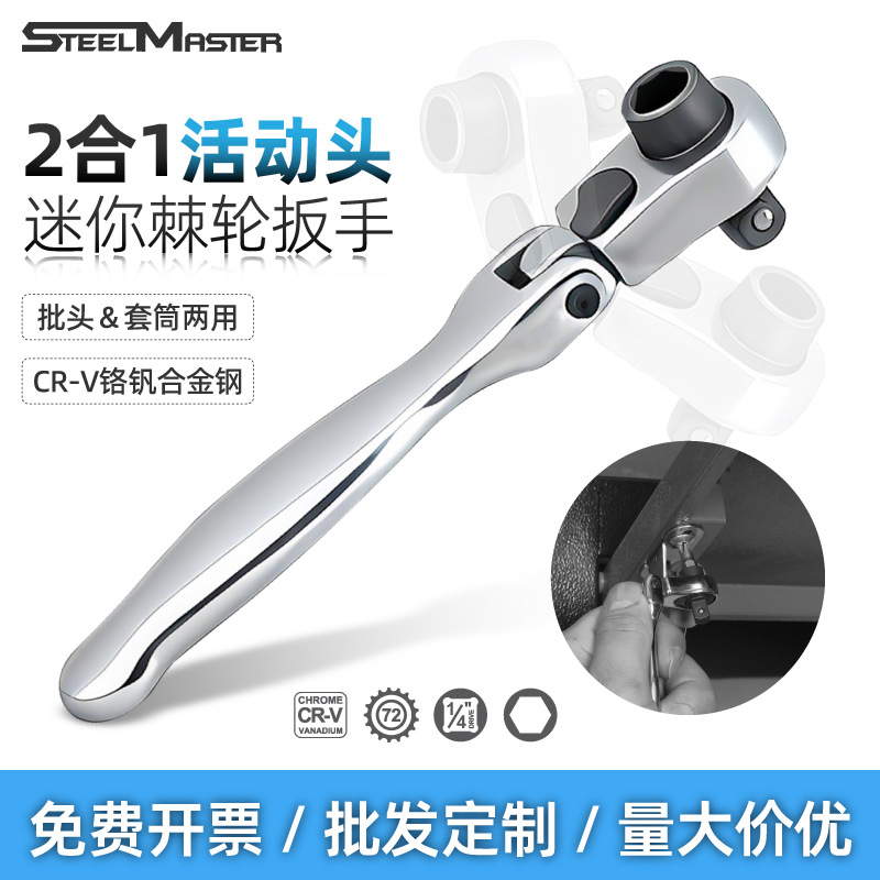 1/4小飞快速棘轮扳手二合一棘轮扳手迷你批头套筒通用双头款批发