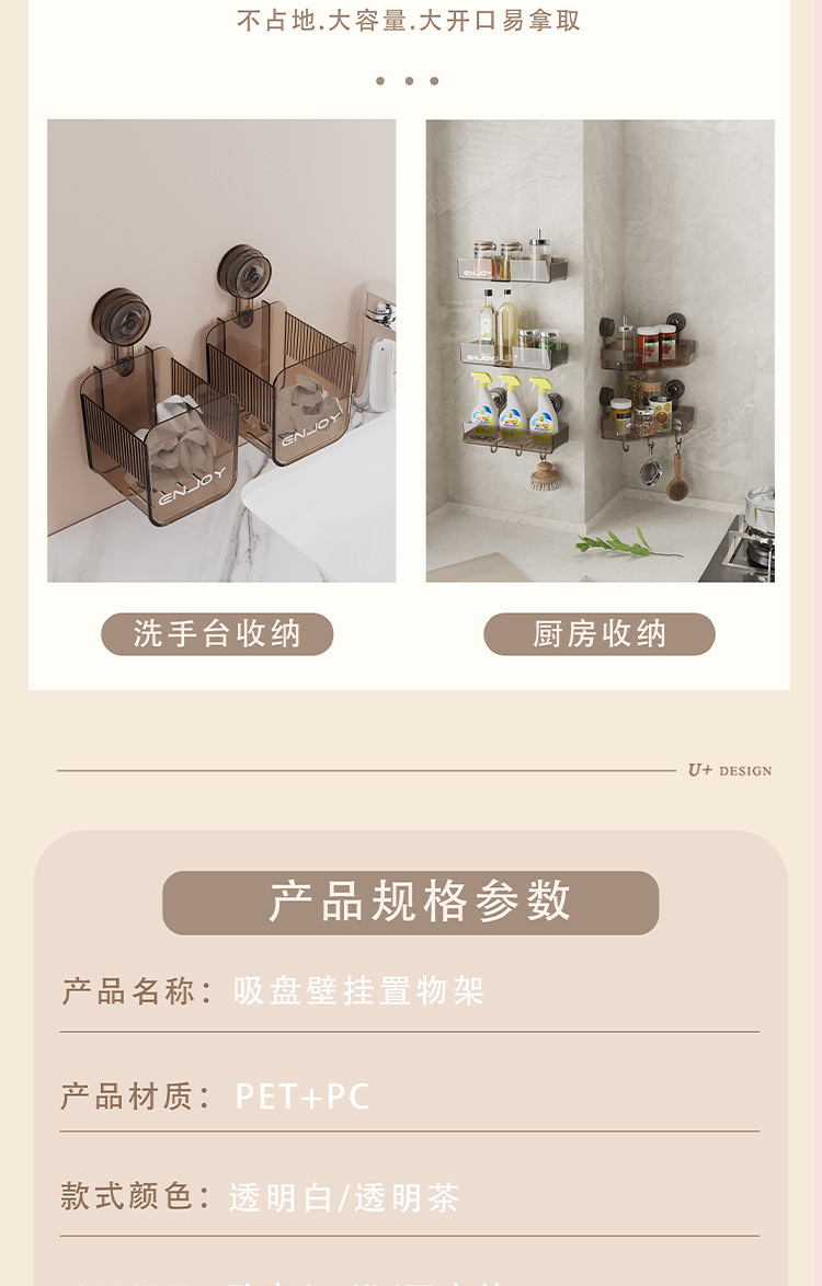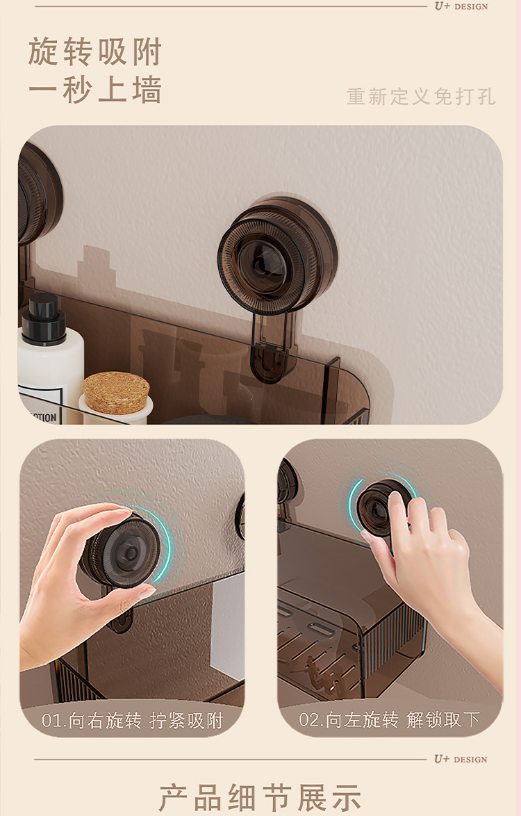 厳選されたバスルーム収納ラック、穴あけ不要、吸盤式、洗面台壁掛け、壁掛け式バスルーム収納ラック