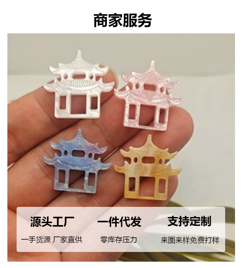 レトロなアクリル透かし彫りのあずまやの形のかんざしの部品