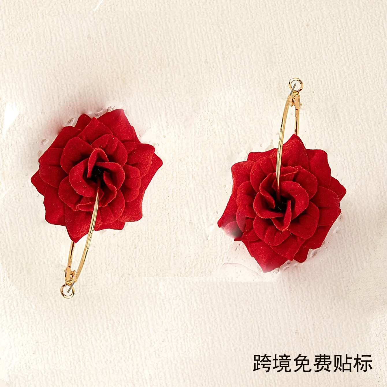 売れ筋の大きな赤い鮮やかなバラのフープイヤークリップイヤリング、絶妙でエレガントで優しい休暇の毎日の旅行タッセル