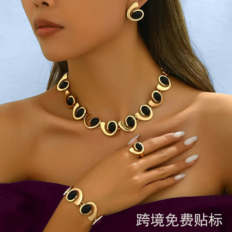 レトロスパイラルカタツムリネックレスブレスレットリングイヤリング4点セット絶妙な高級チャームヨーロッパとアメリカのジュエリー熱い販売