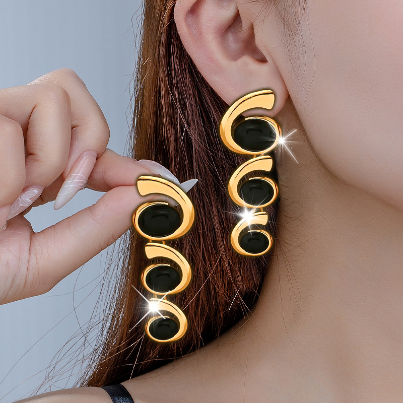 1組の優雅な女性の欧米は楕円のイヤリングをはめ込んでよく売れます。