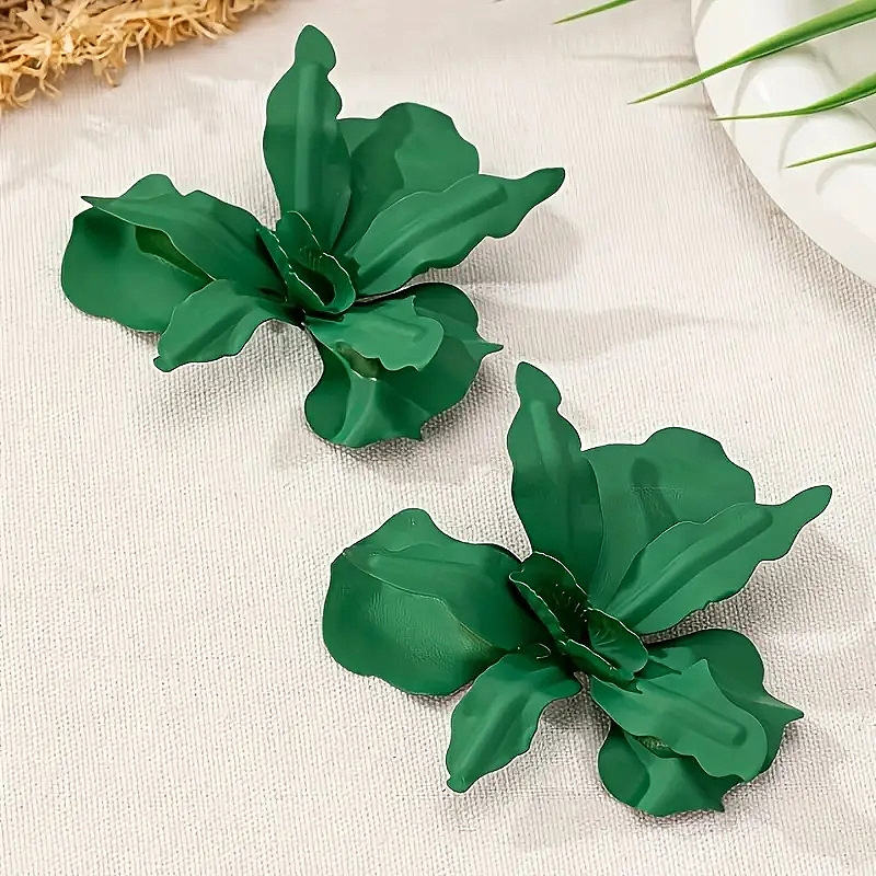 ヨーロッパとアメリカのファッション特大幾何学プリーツペイントフラワーイヤリング、ストリートウェアパーティーやさまざまな機会に適しています春夏