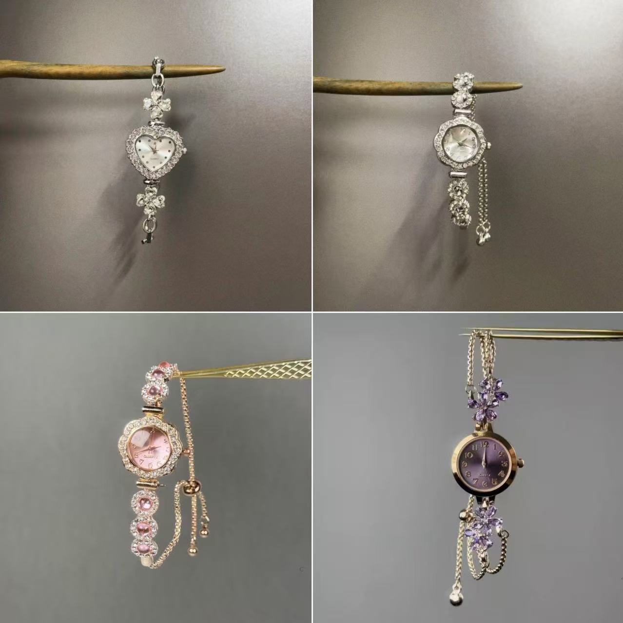 2025新款高级感花形镶钻女士手表小众轻奢高颜值抽拉式手链表厂家