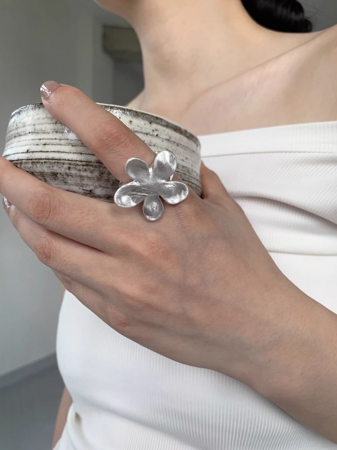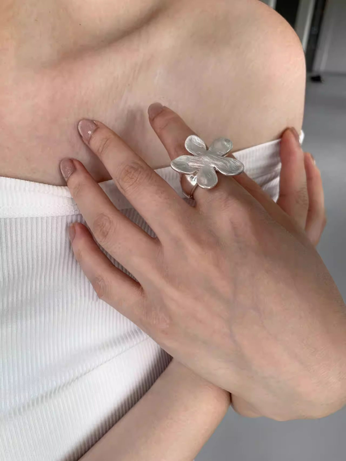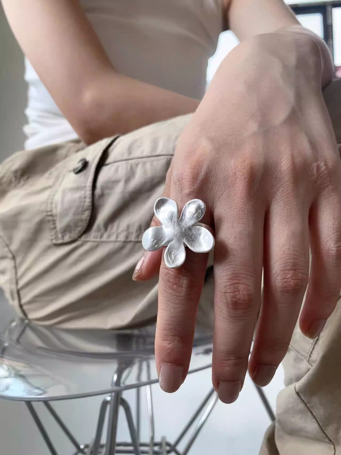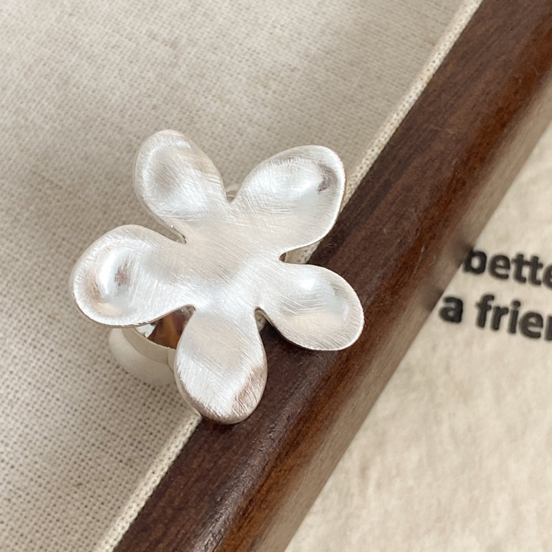 日韓重工銀色伸線花指輪シンプルレトロins真鍮金属フランス人差し指リング女