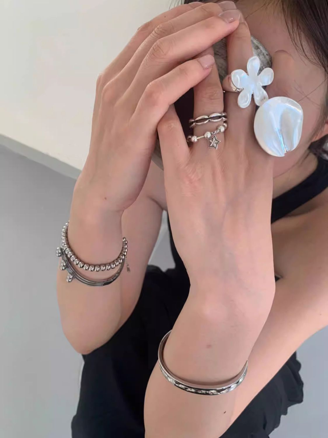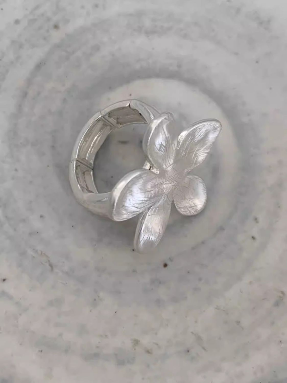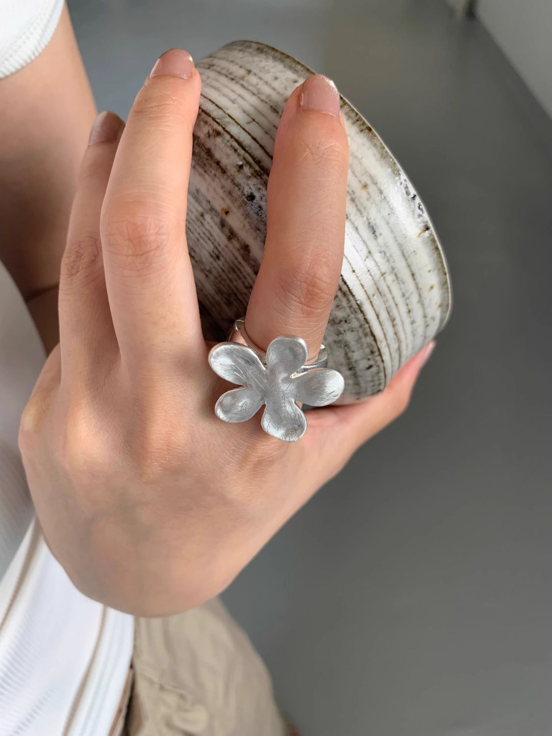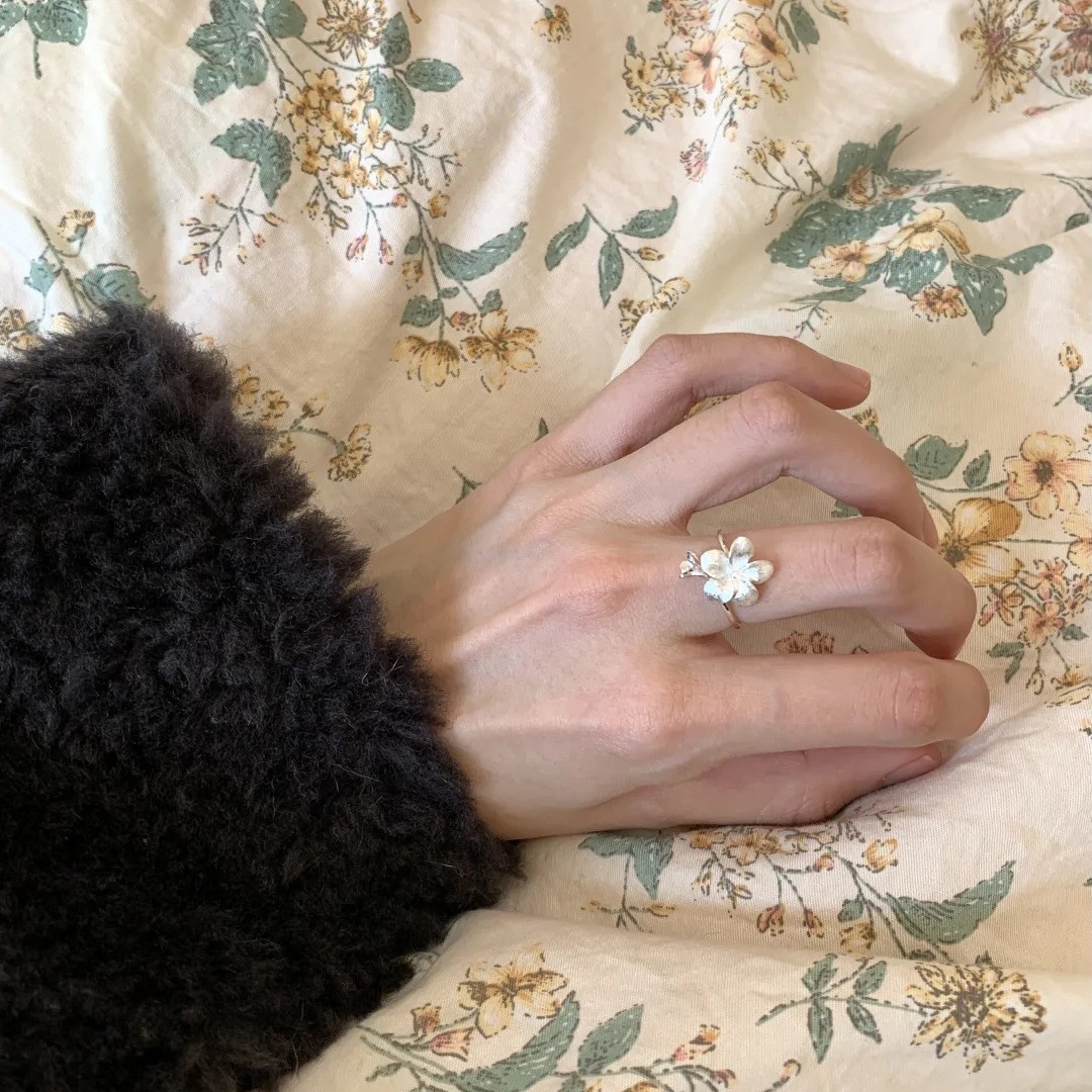 日韓重工銀色伸線花指輪シンプルレトロins真鍮金属フランス人差し指リング女