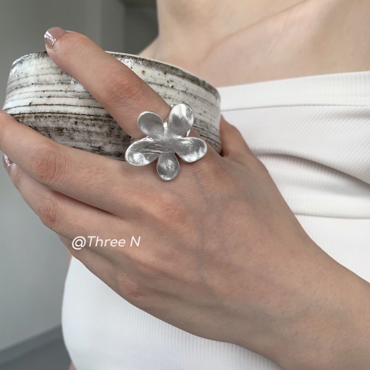 スリーn重工銀色の線引き花の指輪は極めて簡単で弾力的にinsの日常の人差し指の指輪を調節します。