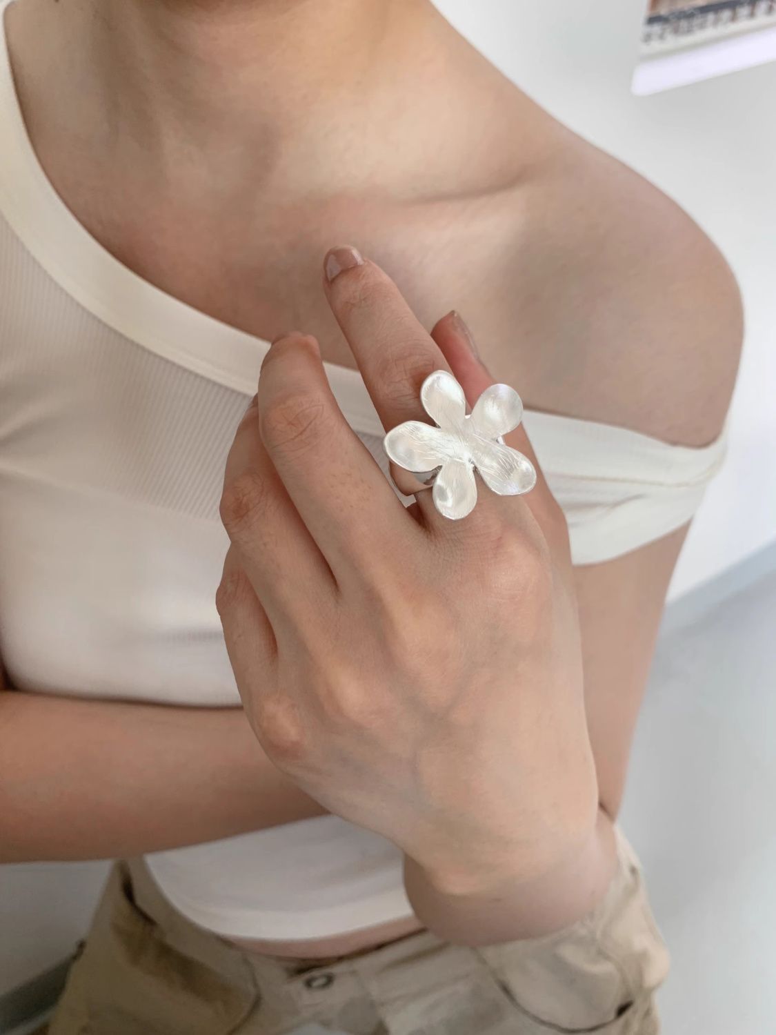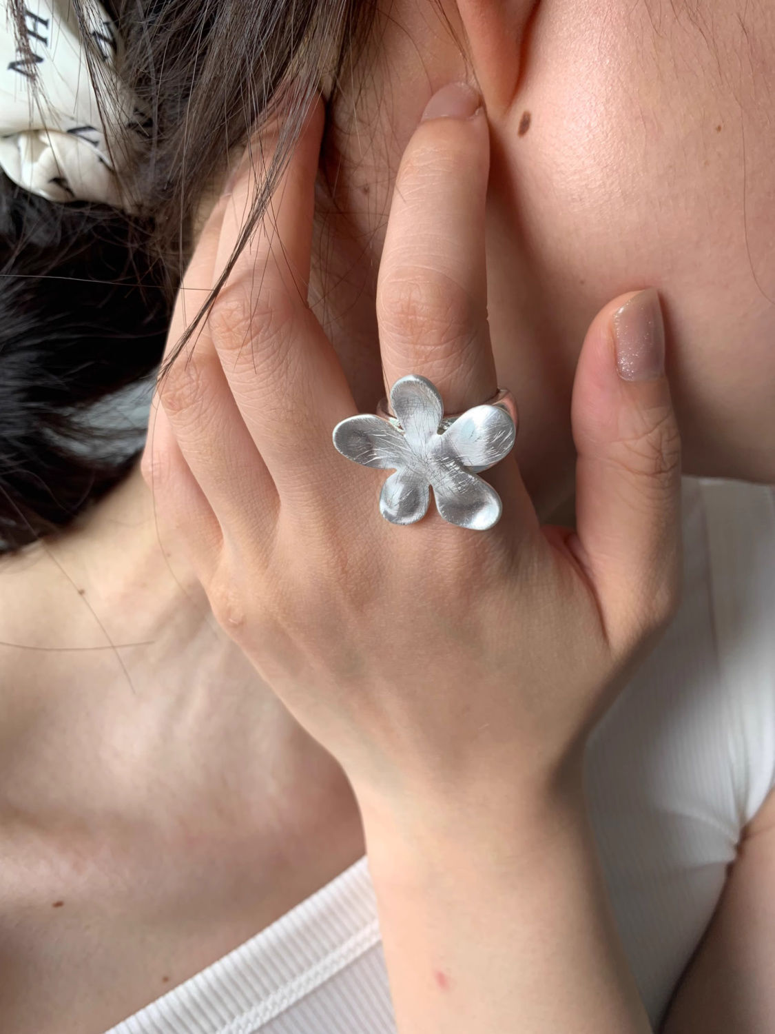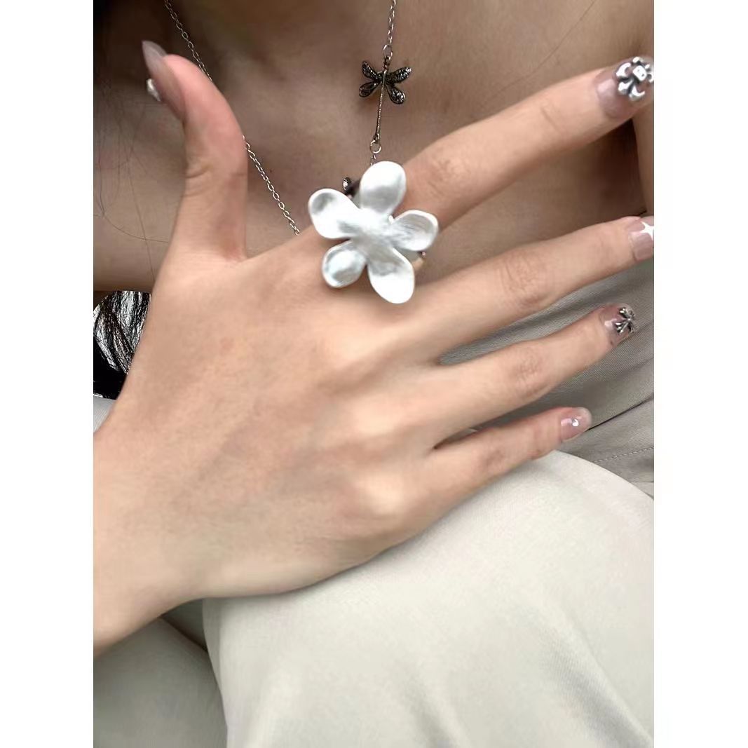 欧米の国境を越えた宝飾品はフランスの丸いしわの金属指輪を誇張して、不規則な小さな花の指輪をシンプルにしている