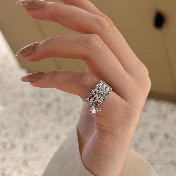 超閃光多層満ドリル水滴流蘇指輪の女性の清冷感の小さい大衆は口を開けて設計の指環の指の指輪をつけます。