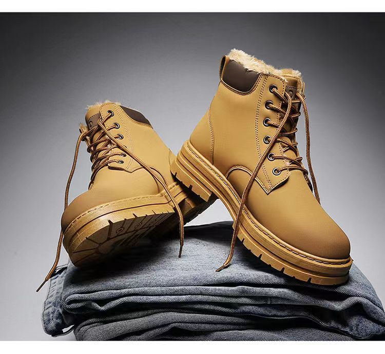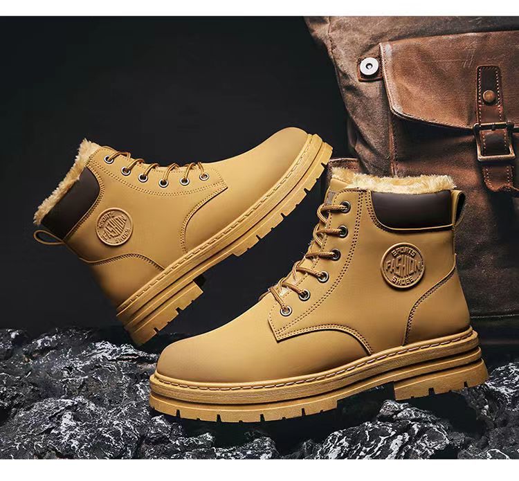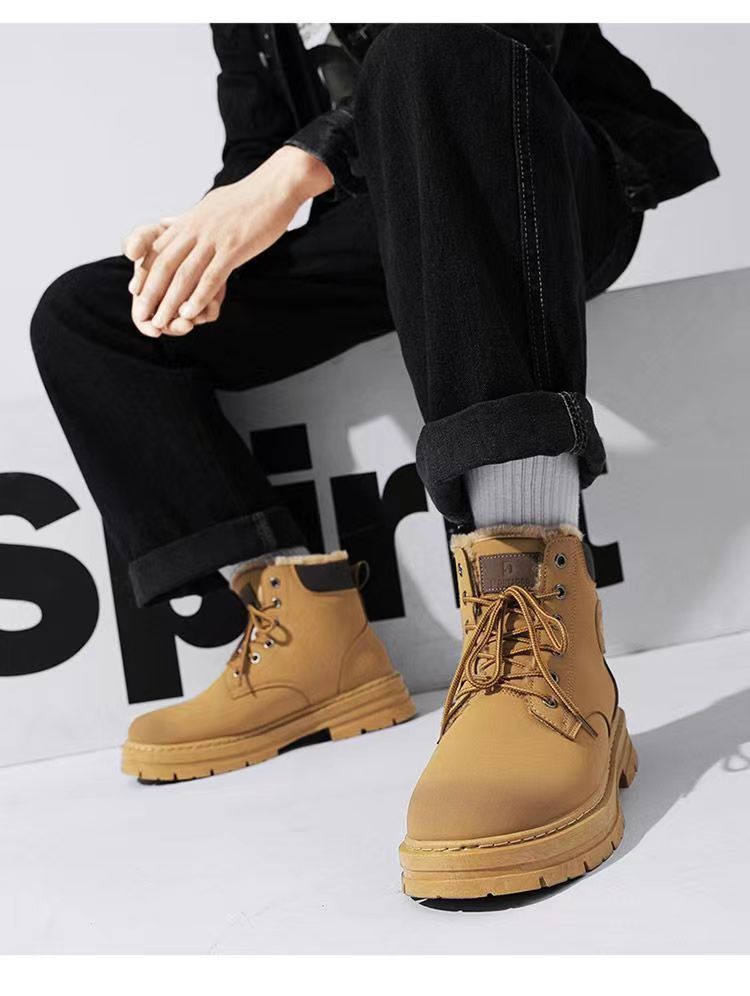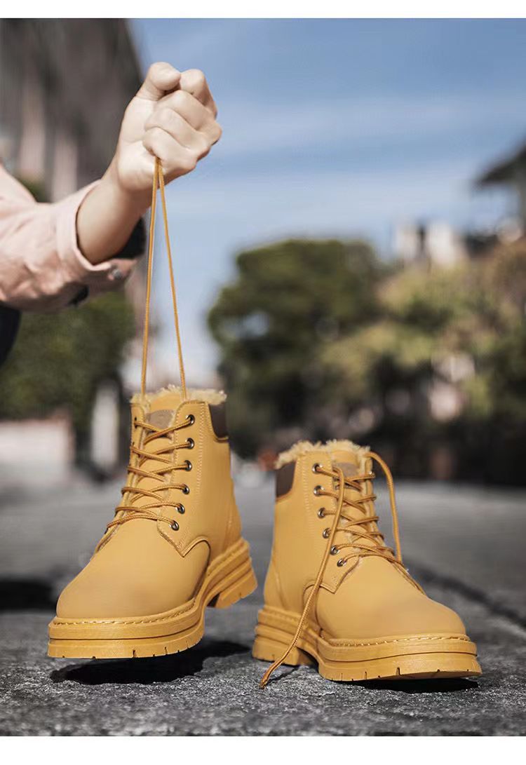 2025新型秋男靴クラシックファッション耐摩耗防水高助マーティンブーツソフト底工装滑り止め大黄靴