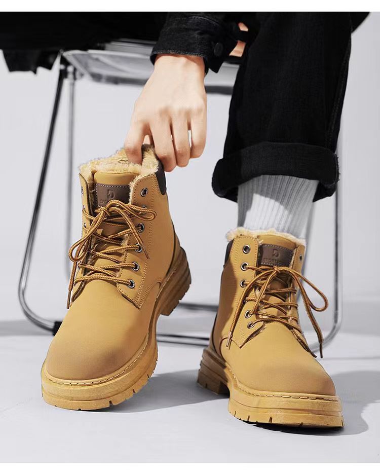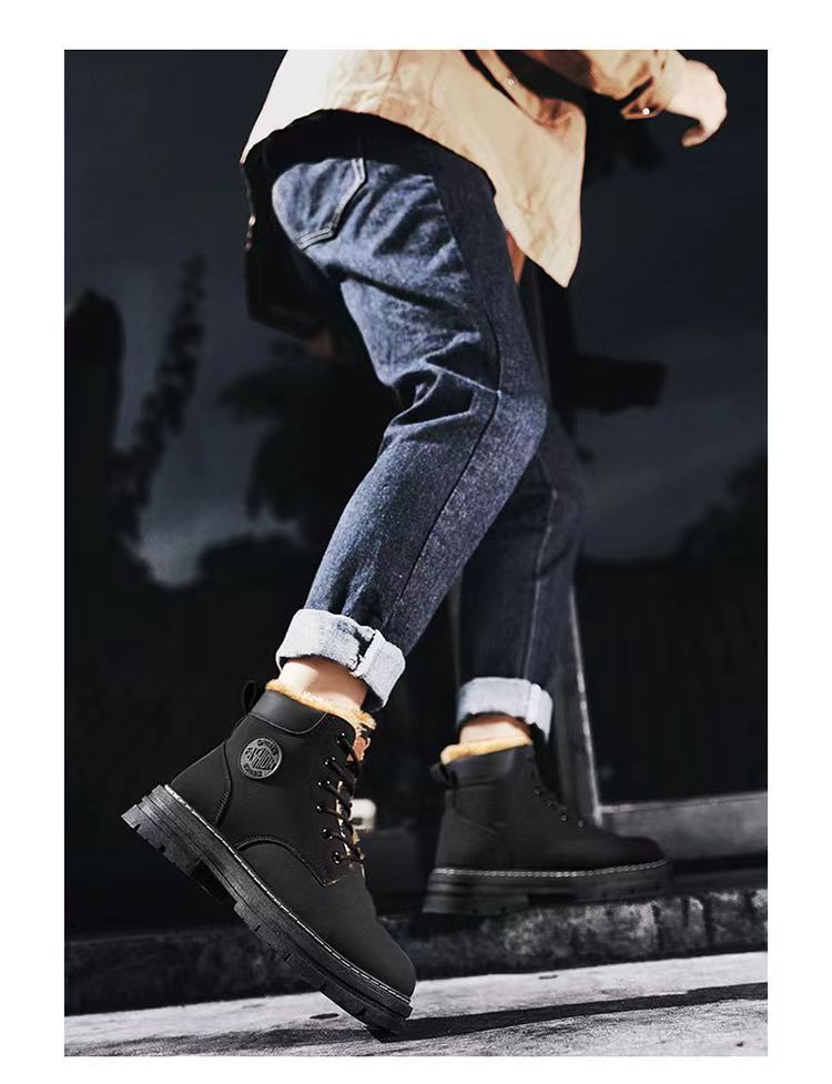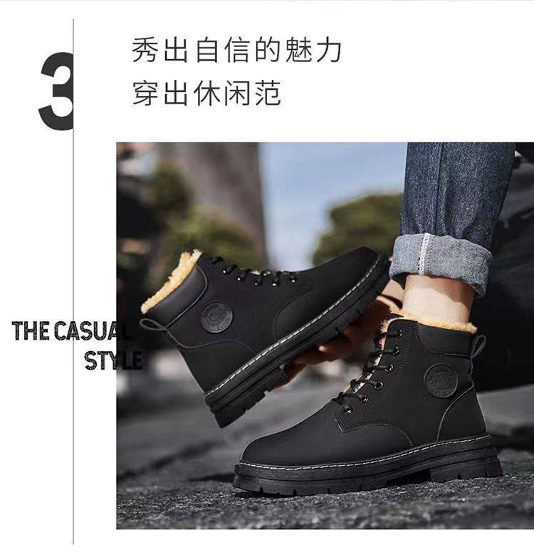 冬の男性靴とベルベットの高さはマーティンブーツの男性工装靴の流行に合わせて厚い底に保温綿靴のショートブーツを厚くする
