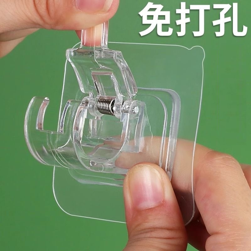 帘杆挂钩窗帘杆夹固定器粘贴式支架夹子免打孔横杆门帘伸缩杆挂钩