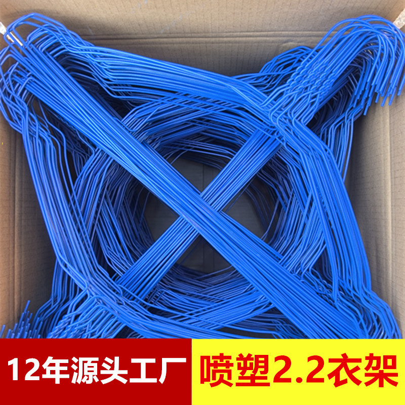 干洗店一次性铁丝衣架喷塑钢丝2.2加粗蓝色白色出口外贸衣架包塑