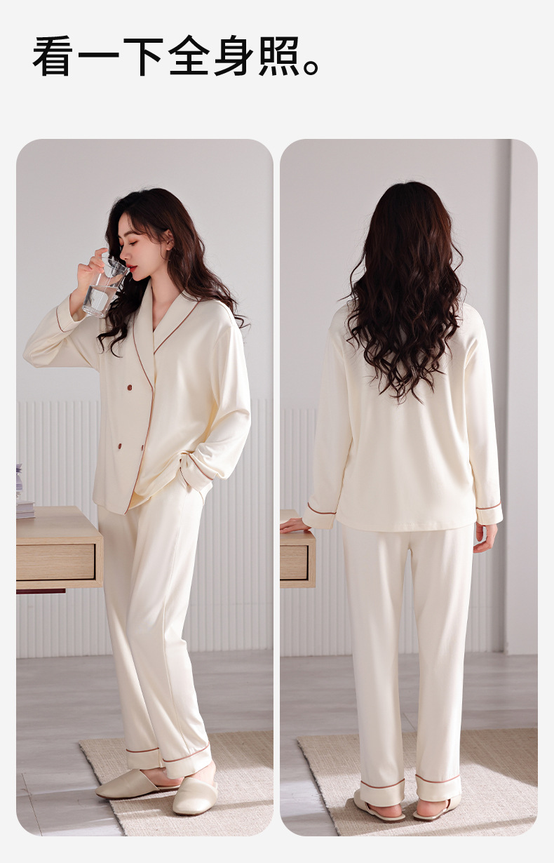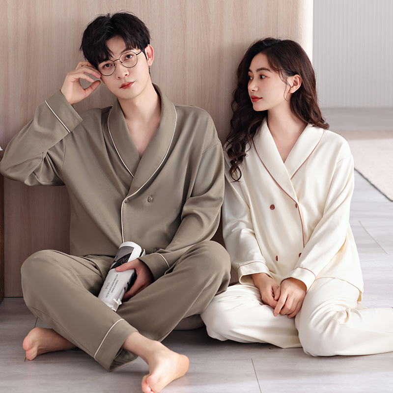 抗菌純綿カップルパジャマ女性春秋長袖カーディガン秋冬純色大きいサイズプルオーバー爽やか綿ホームウェア