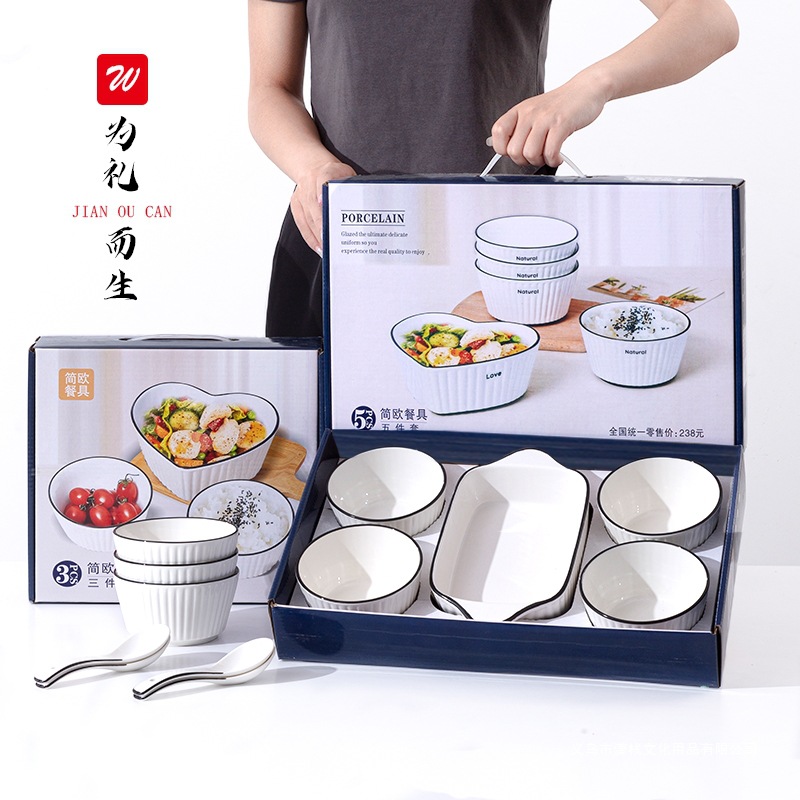 陶器のボウル、スプーン、皿、食器のギフトボックスセット、実用的なプチギフト、会社の年次総会、開店イベント、新馬年のお土産