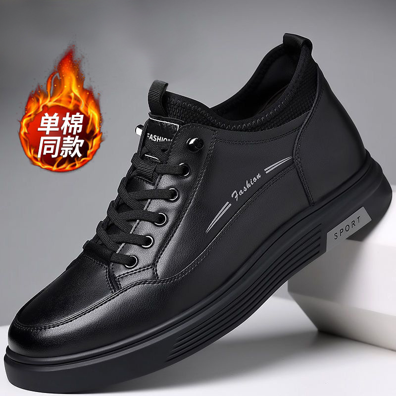 皮鞋男款商务正装皮鞋冬季英伦休闲加绒棉皮鞋防滑软底中年爸爸鞋