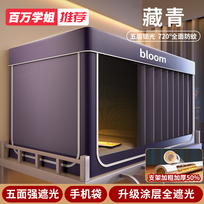 遮光ベッドカーテン蚊帳一体式強遮光全包シングル蚊帳大学生寮用上下床全閉鎖