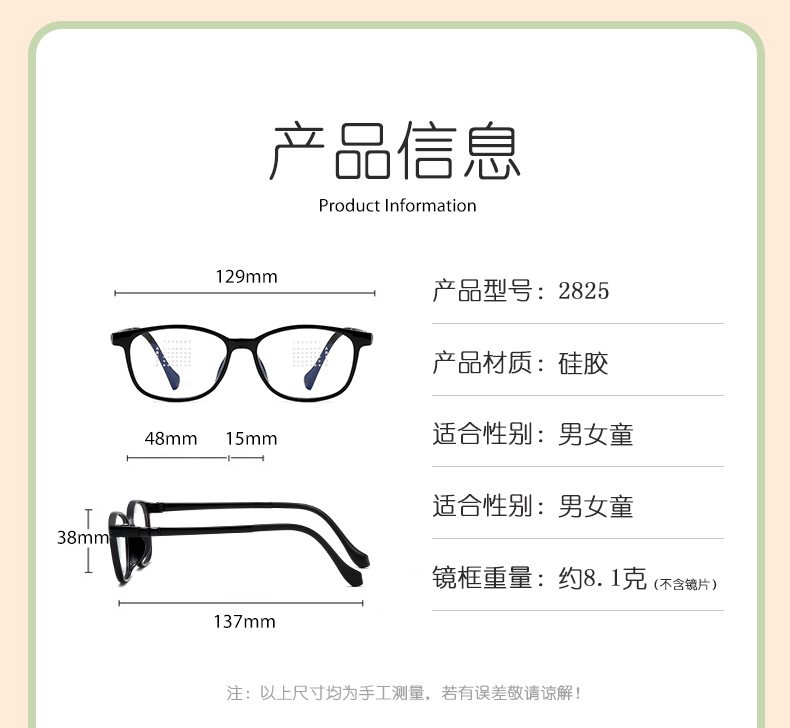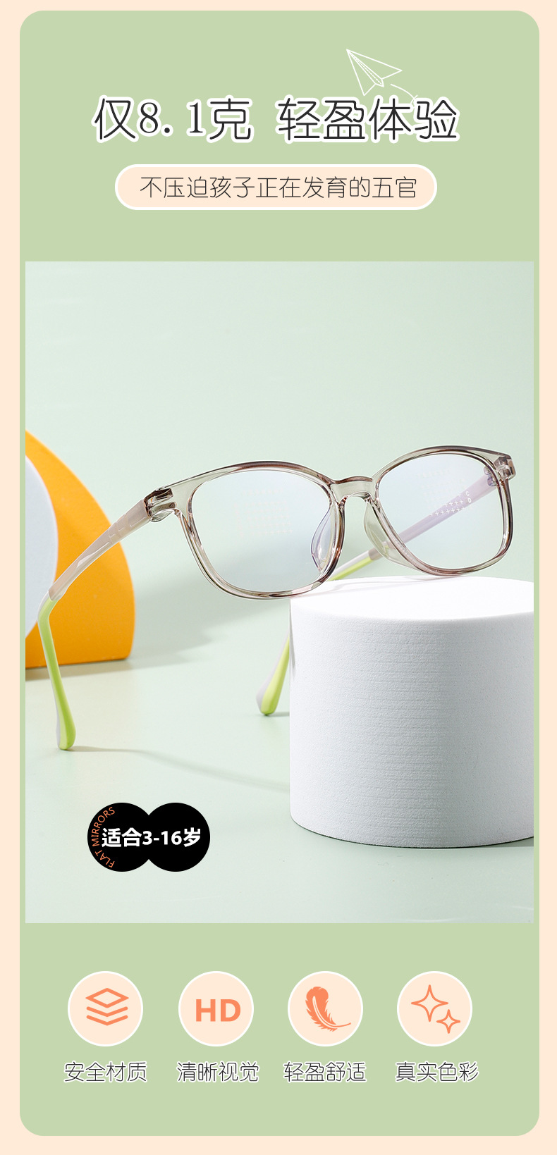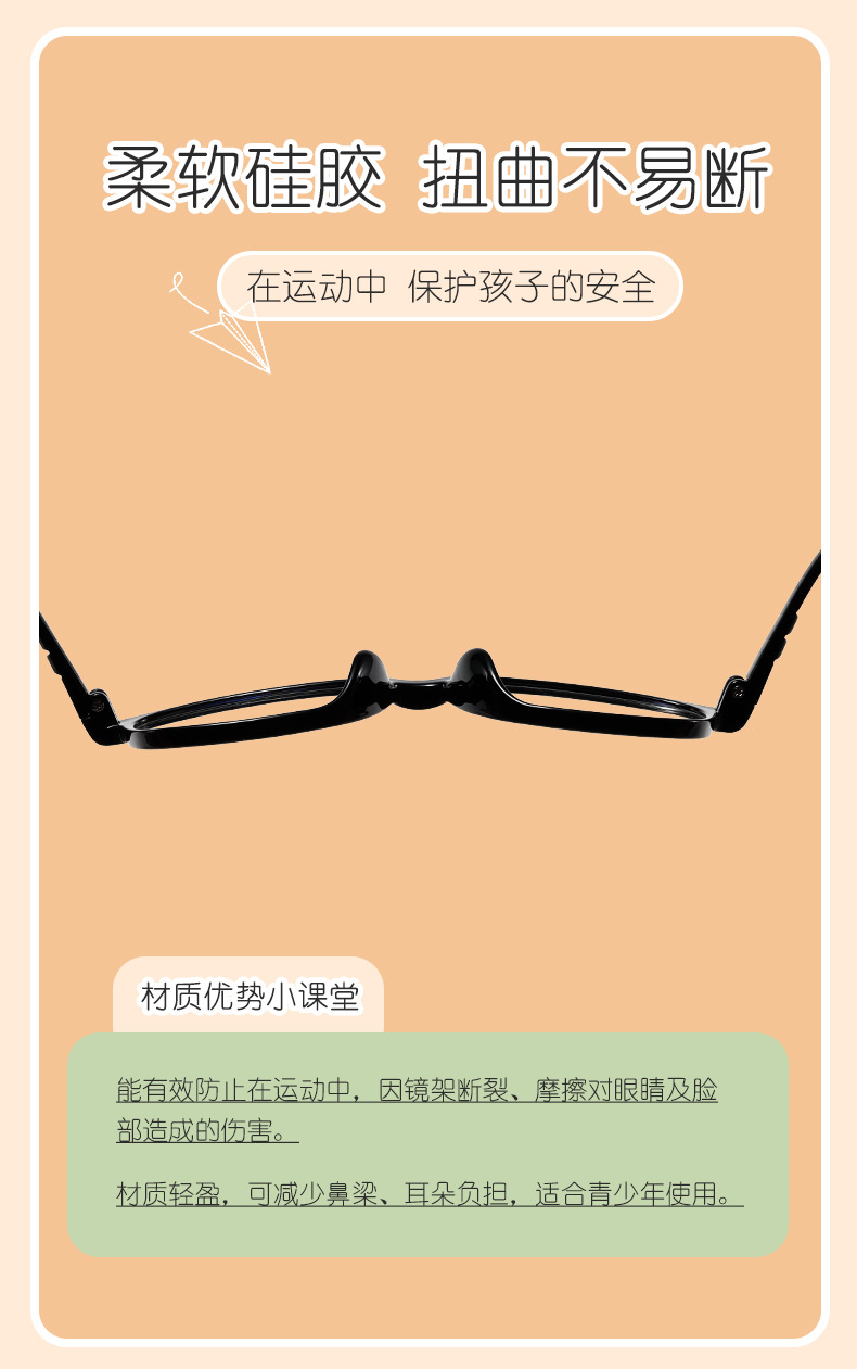 新モデル 肌に優しい超軽量シリコン製ソフトノーズパッド付き子供用TRメガネフレーム 近視・弱視対応 工場製TR90