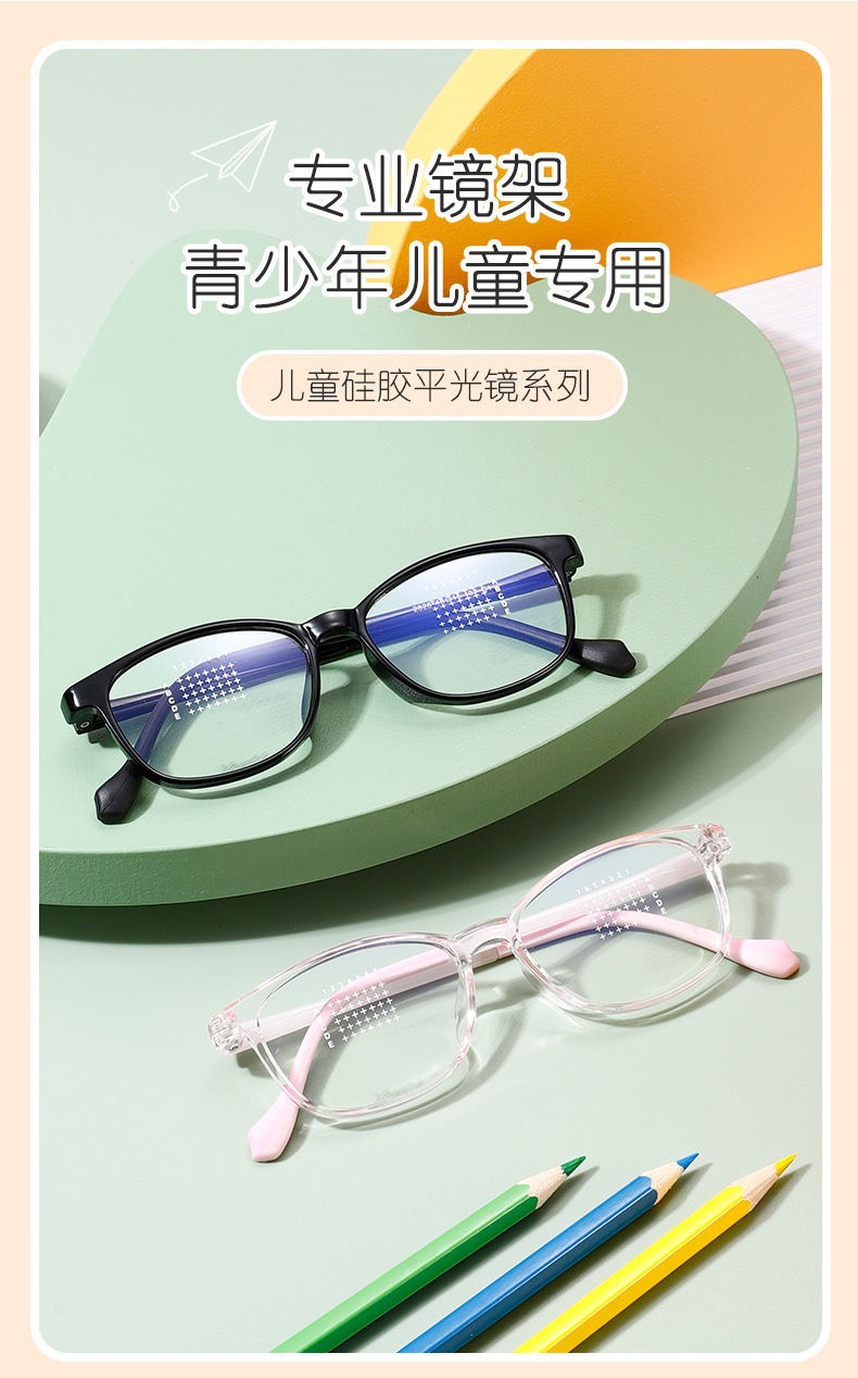 新款亲肤超轻硅胶软一体鼻托儿童TR眼镜框架可配近视工厂儿童眼镜