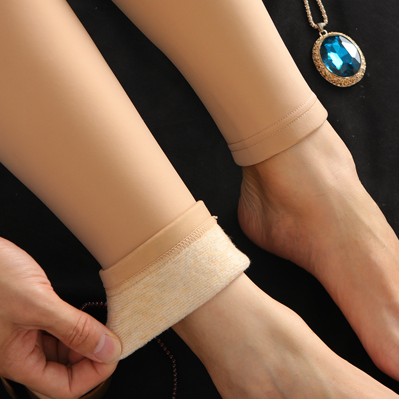 素肌色の9分丈レギンス、女性用、裏起毛、秋冬、大きいサイズ、光沢のあるソックス、シャークパンツ、バーパンツ