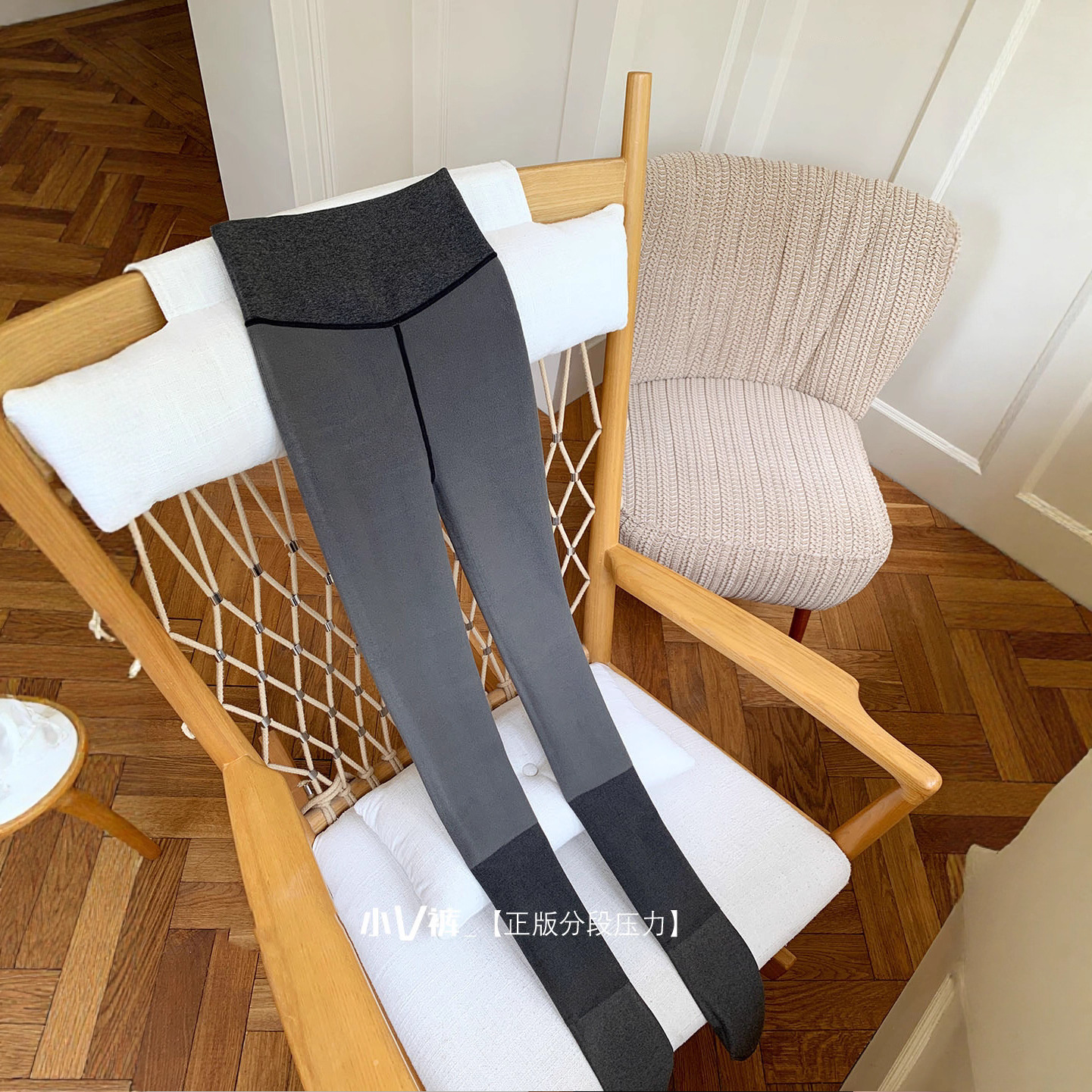 分段微压力瘦腿连裤袜女秋冬季加绒高腰一线档保暖打底裤竖条纹