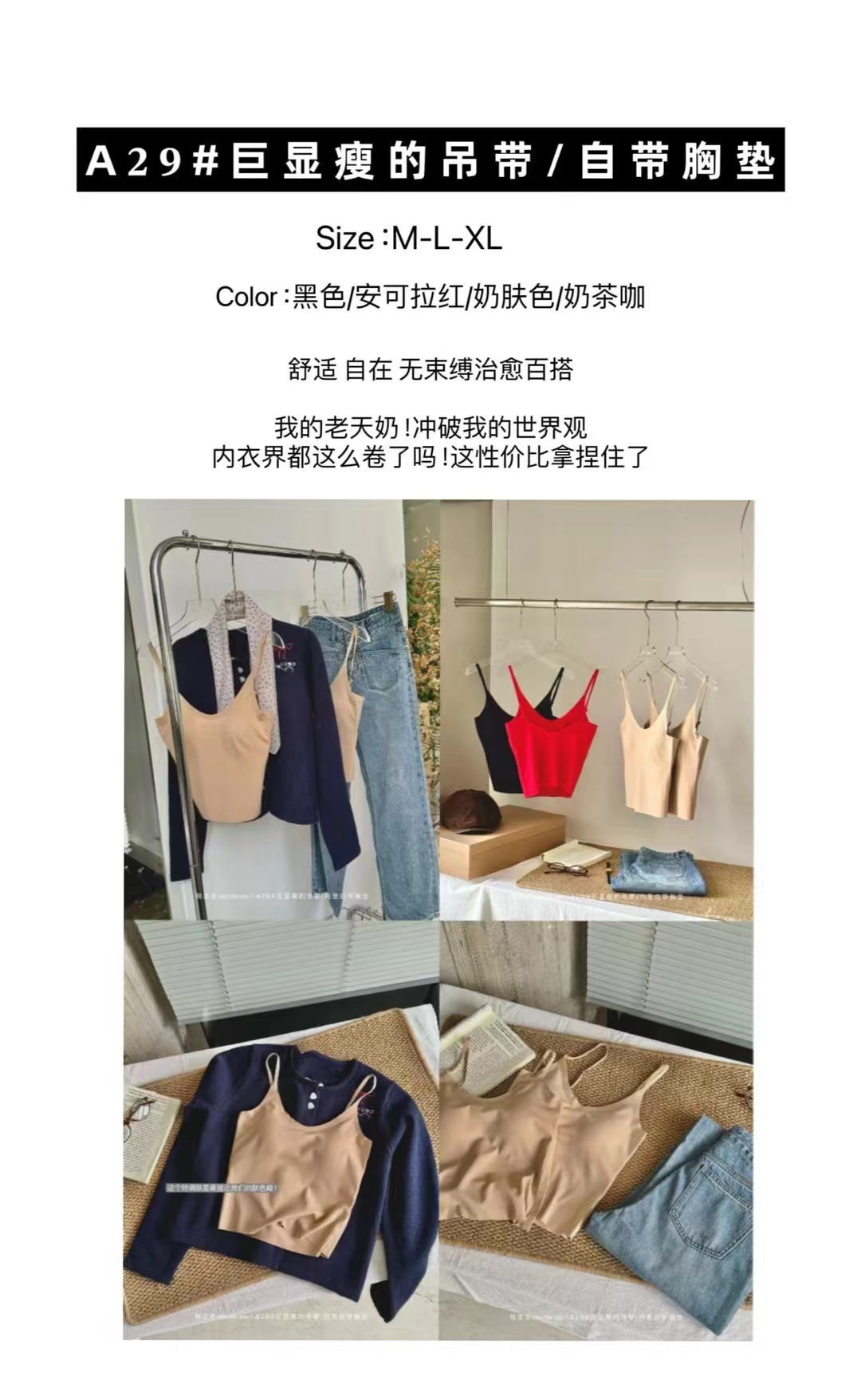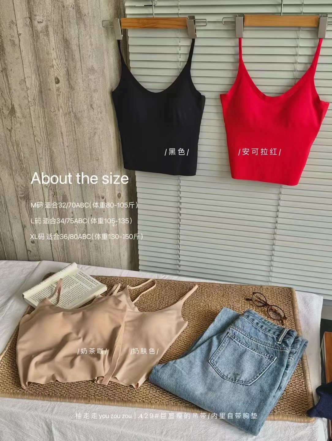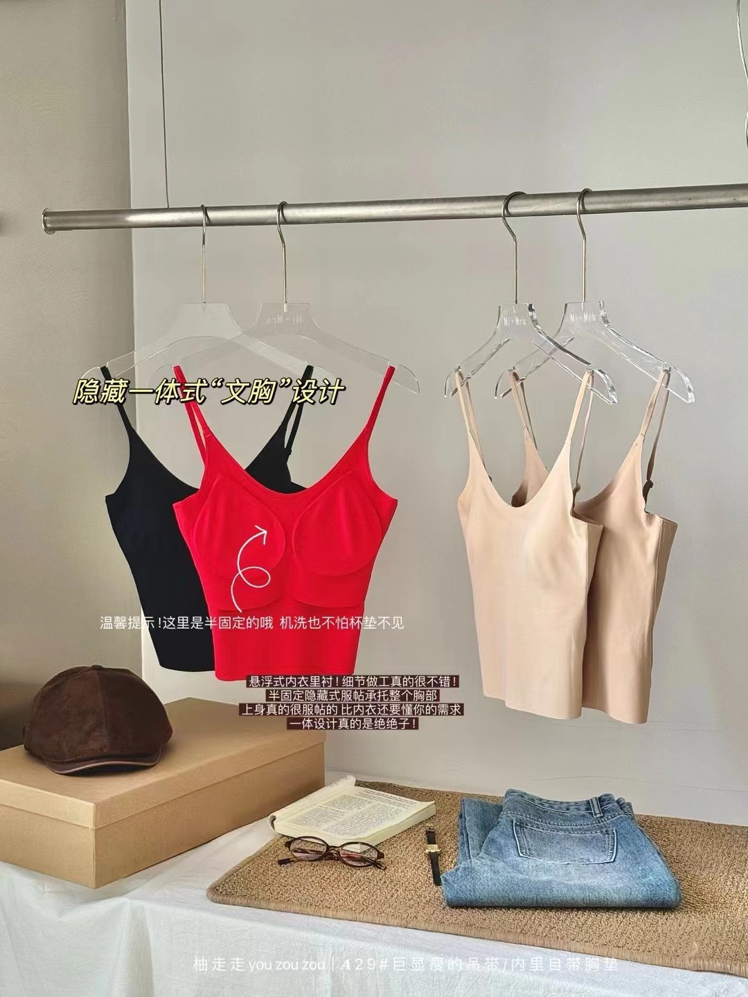 隐形粉底液带胸垫吊带背心文胸一体女固定杯打底外穿上衣不跑杯薄