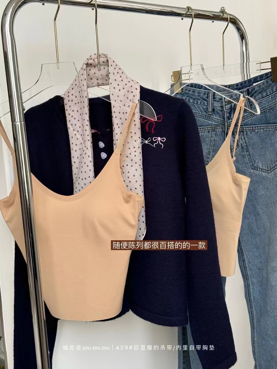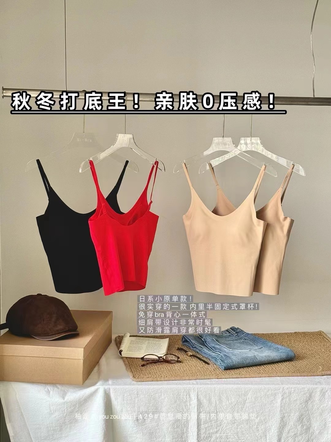 稳占衣橱C位!爆闪细肩带法式V领三角杯高级感内衣秋冬磨毛打底