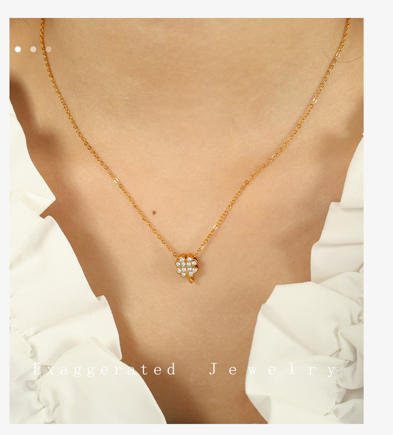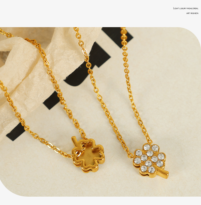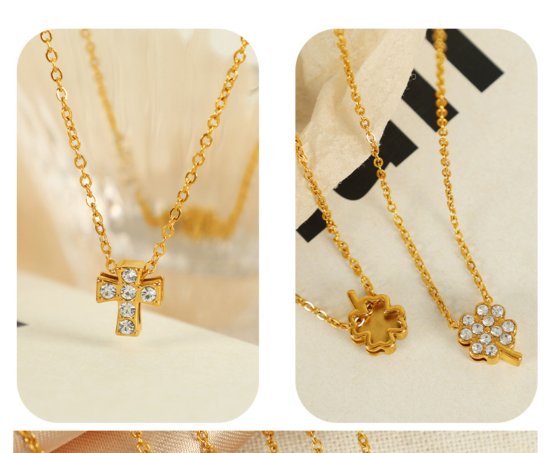 洗練されたファッション女性の四つ葉草ネックレスチタン鋼十字架の幾何学的形状に鎖鎖の花の愛を入れる