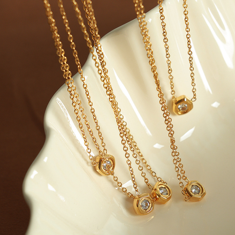 シンプルでファッション的な幾何学的な円形ペンダントチタン鋼のネックレスの大衆気質が洗練されたジルコンステンレス鎖