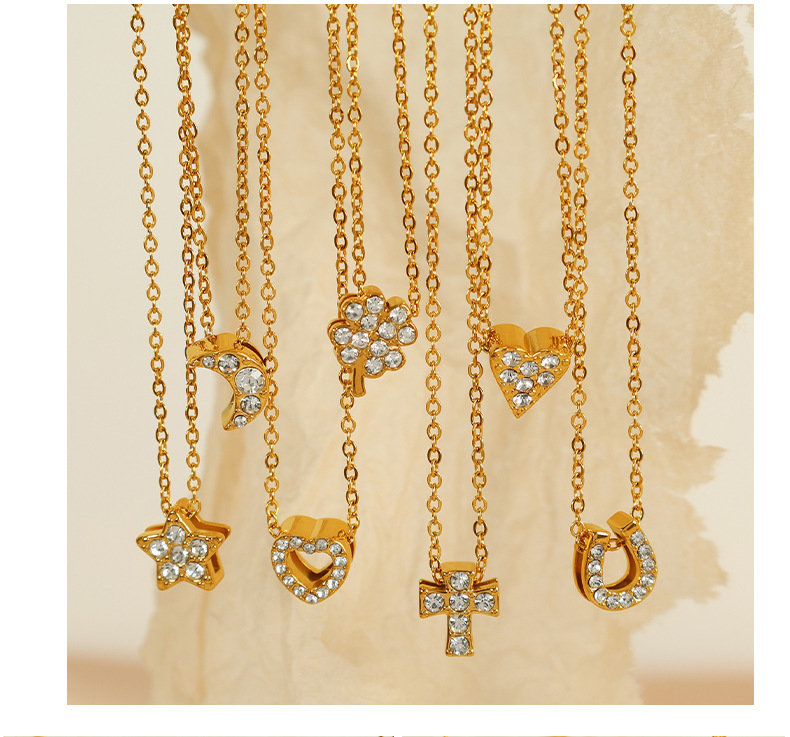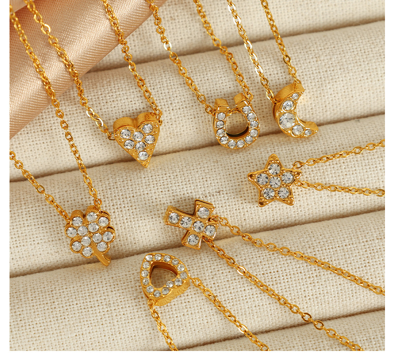 欧美跨境爆款精致DIY多样镶钻吊坠配件不锈钢镀18K金百搭吊坠集合