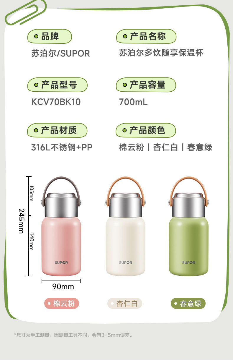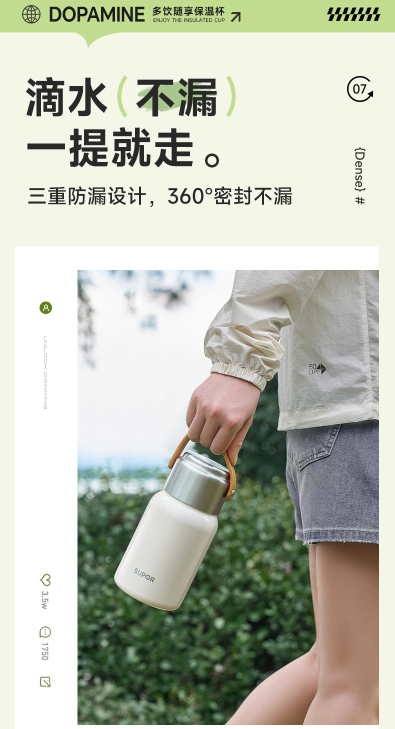 蘇泊爾は保温ポット316lステンレス内胆保冷水筒1l天幕白kcv10ac10を随行している