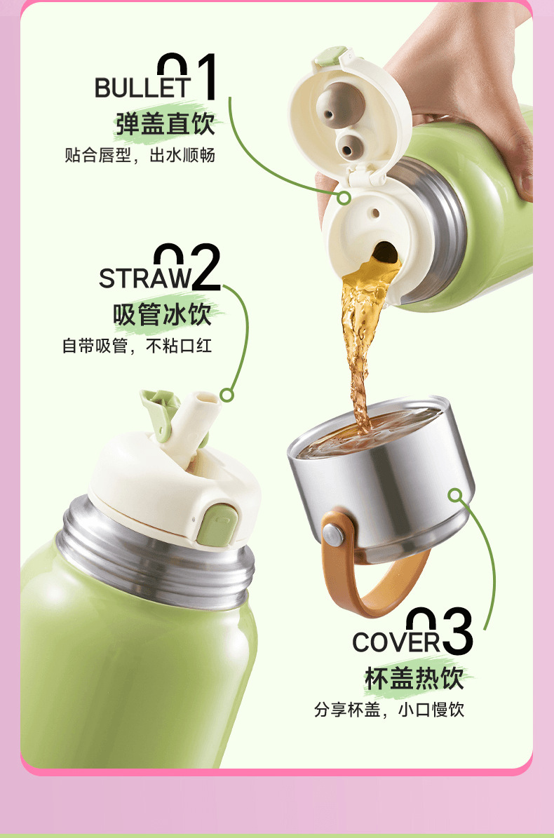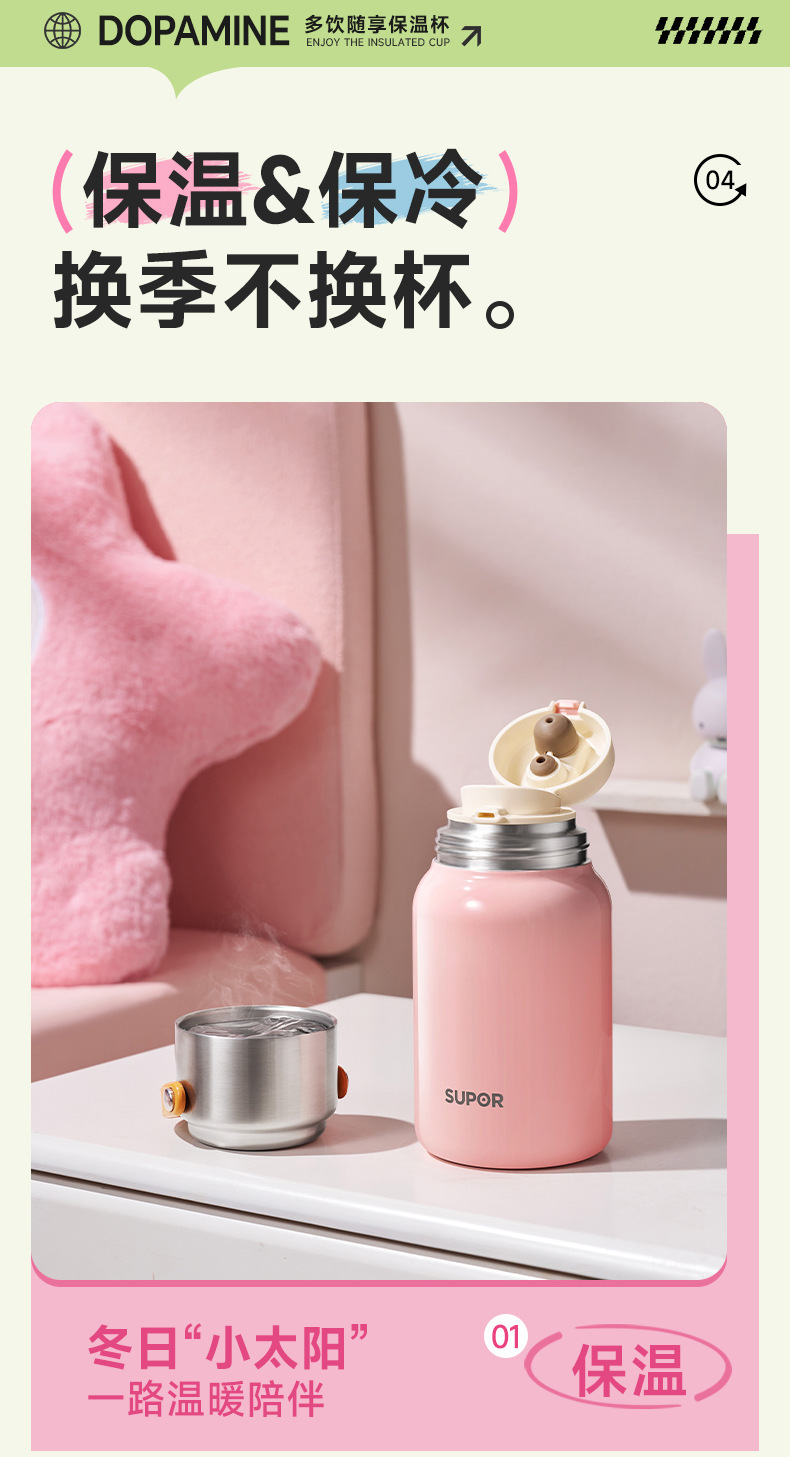 蘇泊爾保温カップ女子泡茶プレゼントカップ外出コーヒー児童ストローカップKCV70BJ10ポット