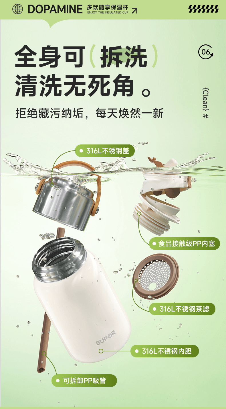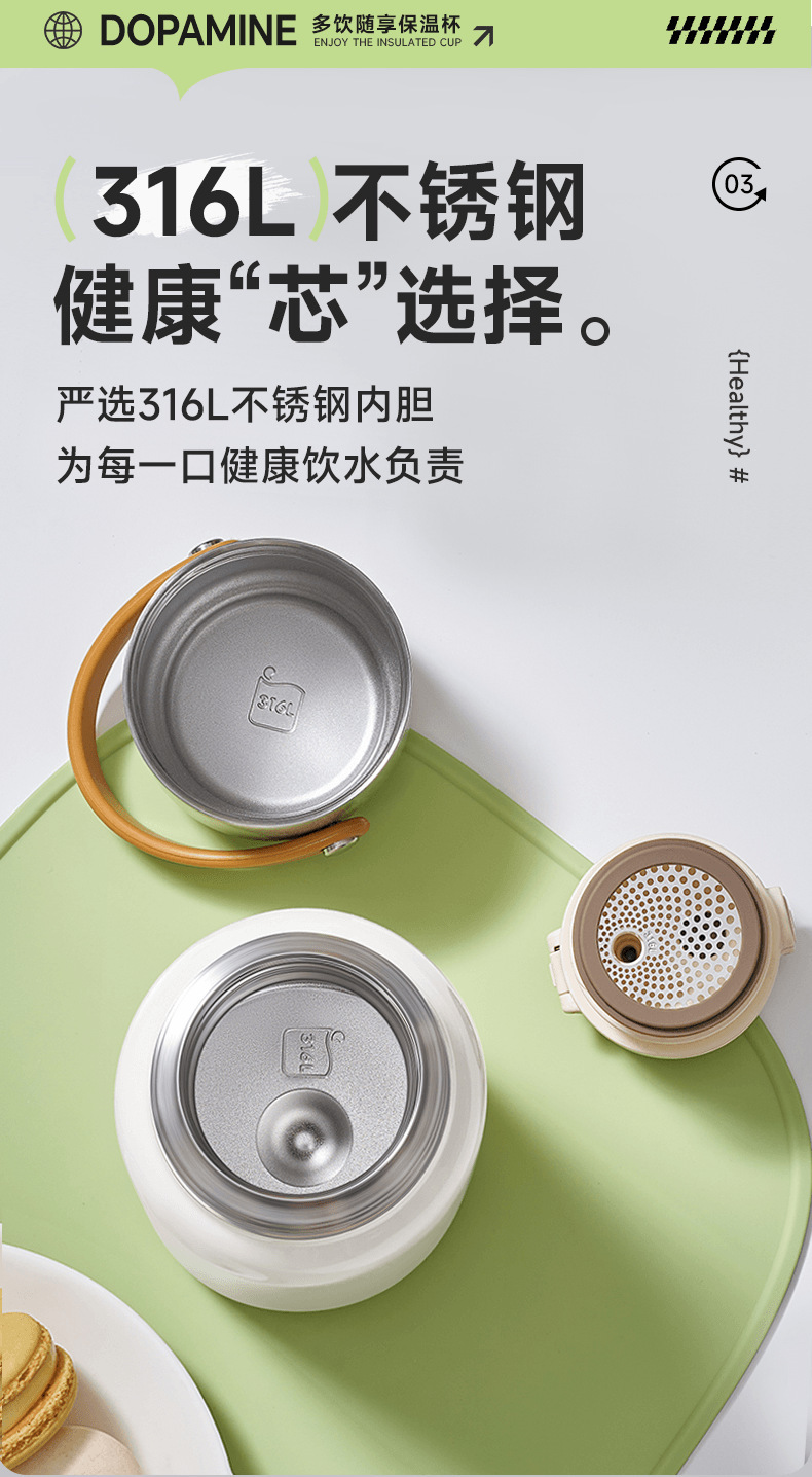 蘇泊爾保温カップ女子ストローコップ大容量水筒高颜値316ステンレス製ティーフィルター付き携帯