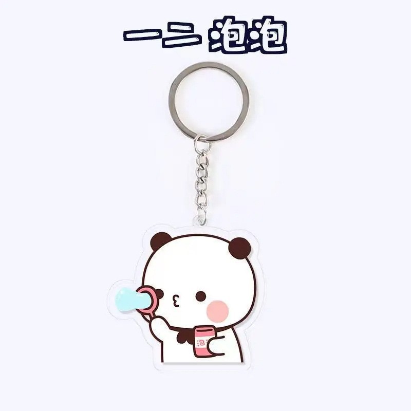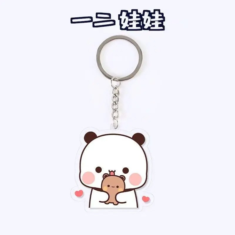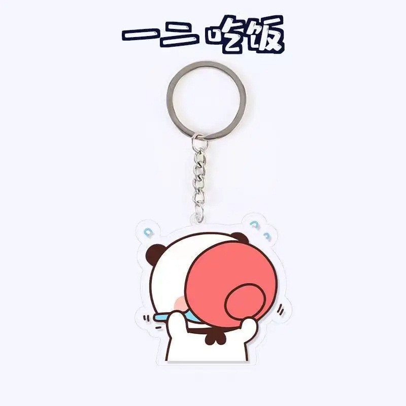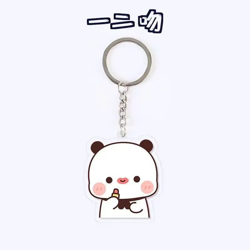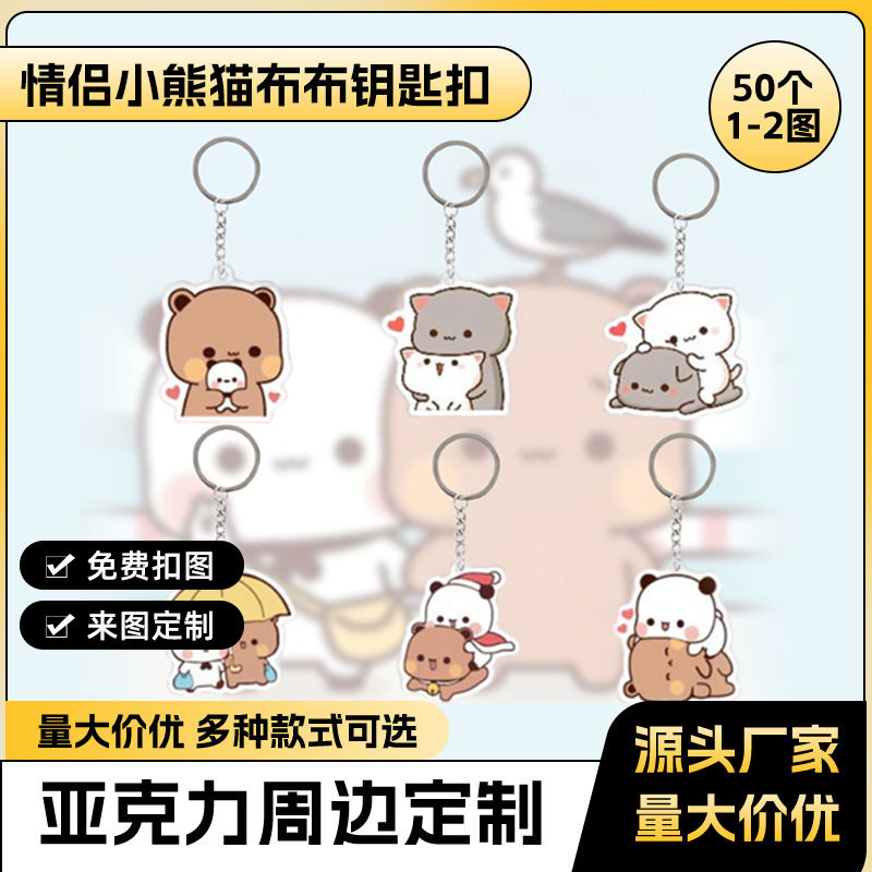 跨境新品亚克力情侣一二小熊猫布布钥匙扣高颜值学生背包挂件装饰