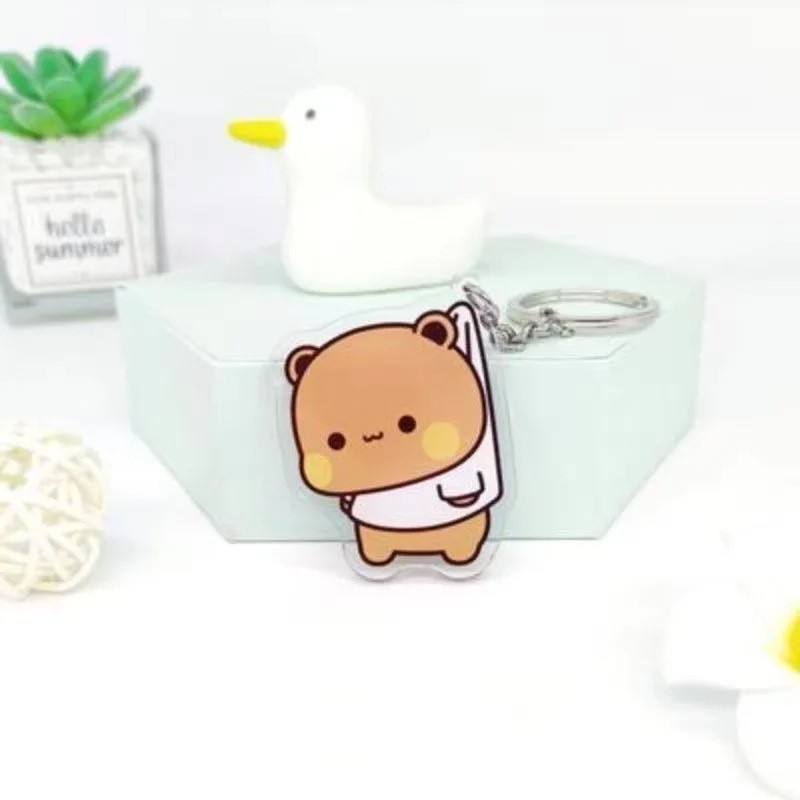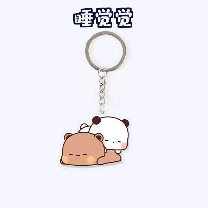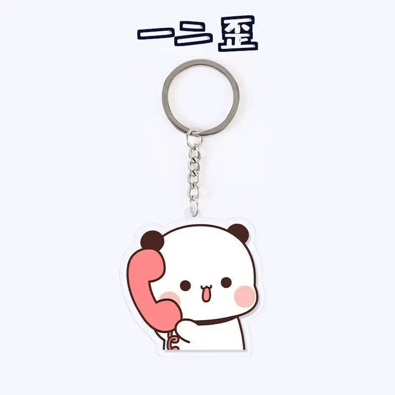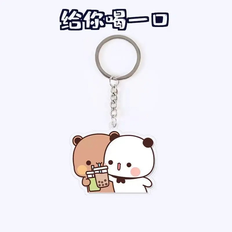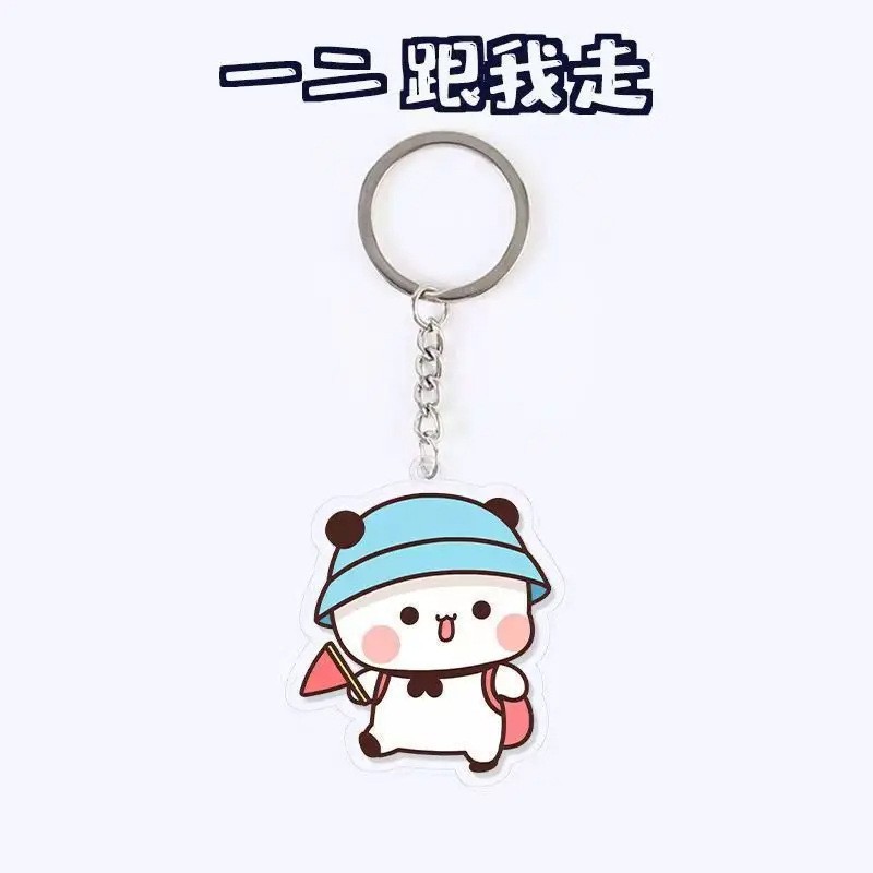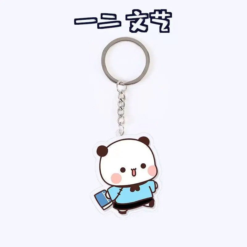 跨境新品亚克力情侣一二小熊猫布布钥匙扣高颜值学生背包挂件装饰