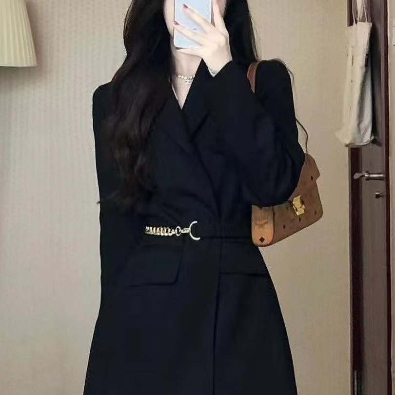 西装连衣裙女2026新款春秋韩版气质时尚修身收腰小个子职业中长裙