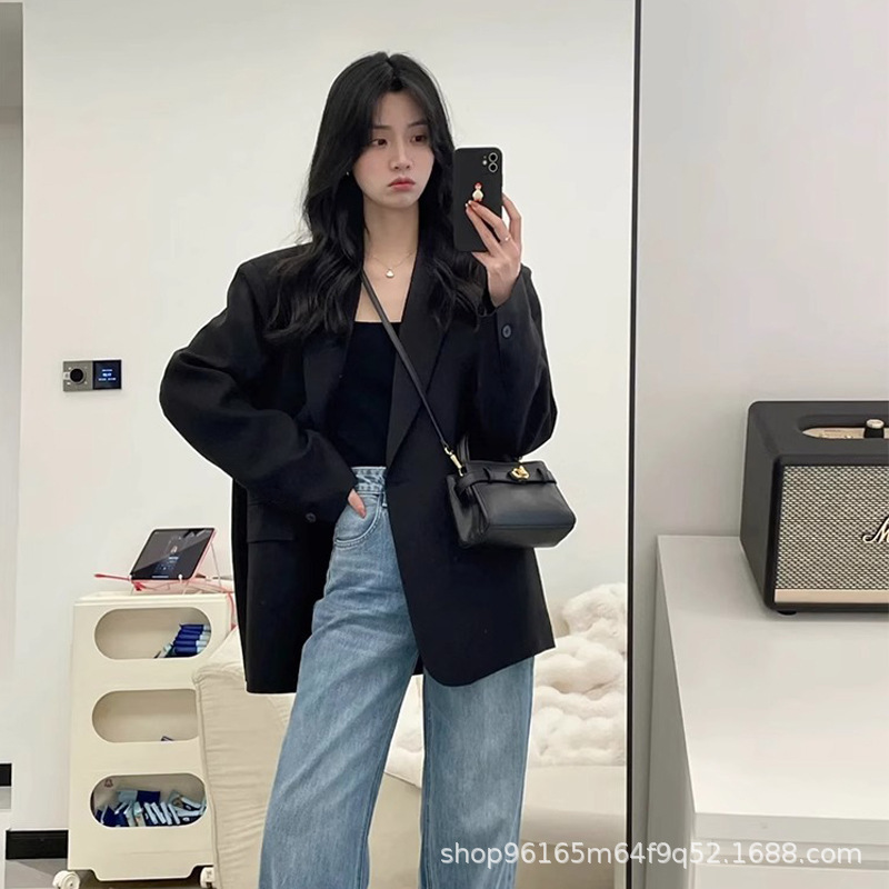 黒いスーツのコートの女性2025の新型春秋服は今年はoversizeカジュアルで高級感のあるスーツが流行しています。