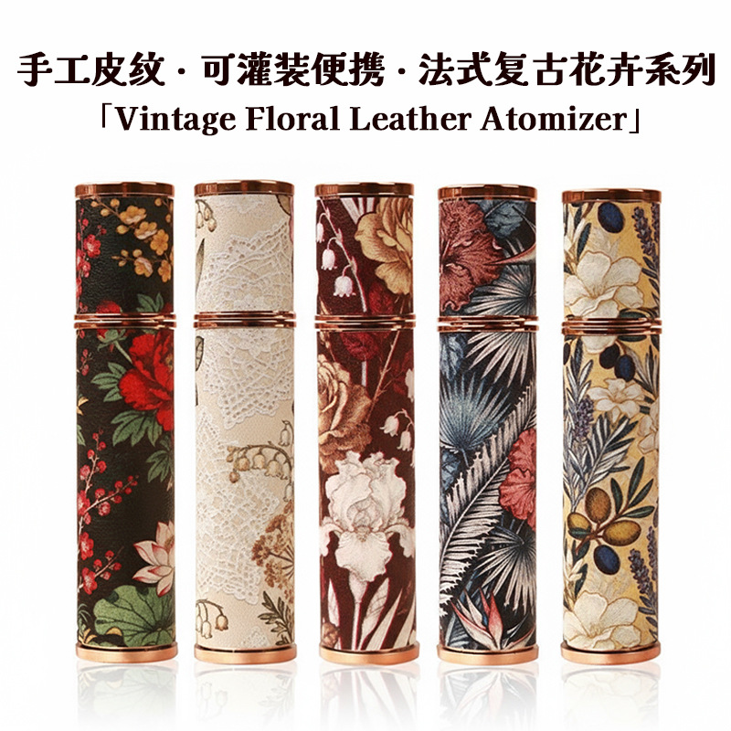 新款10ML复古花园花卉植物皮革玻璃香水瓶印花高端便携旅行喷雾瓶