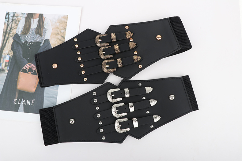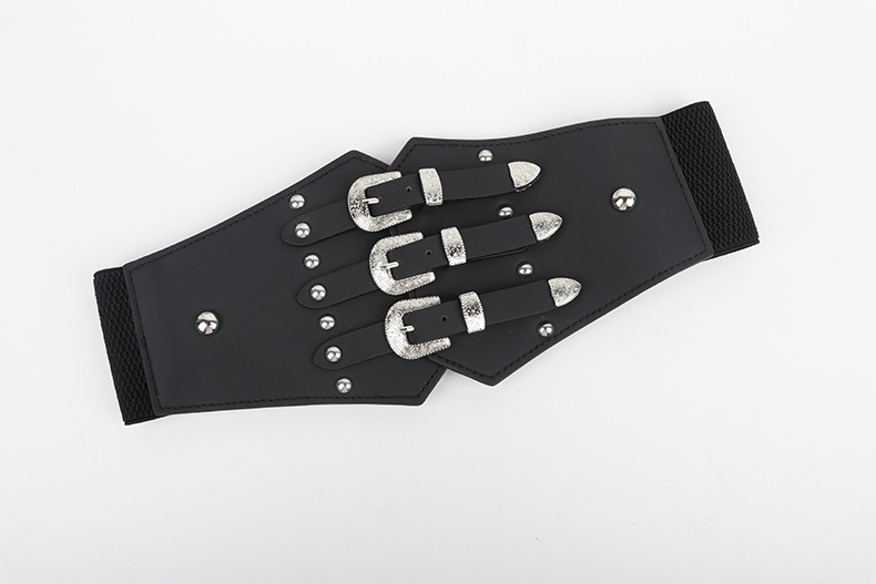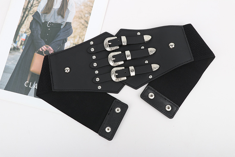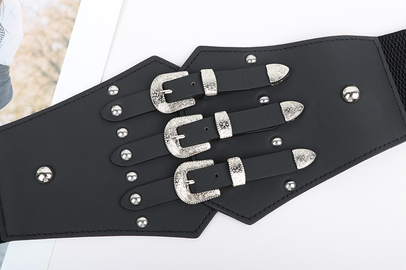跨境爆款朋克风铆钉腰封女宽弹力装饰皮带