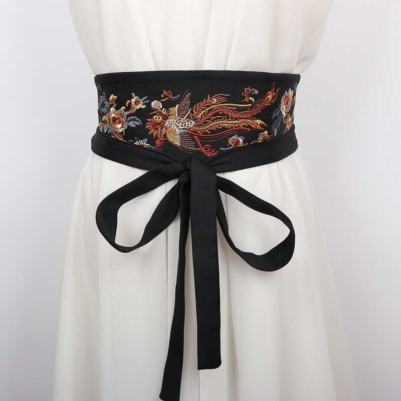 国風国潮女史は腰を飾って鳳凰の花の刺繍の布の顔を密封します。