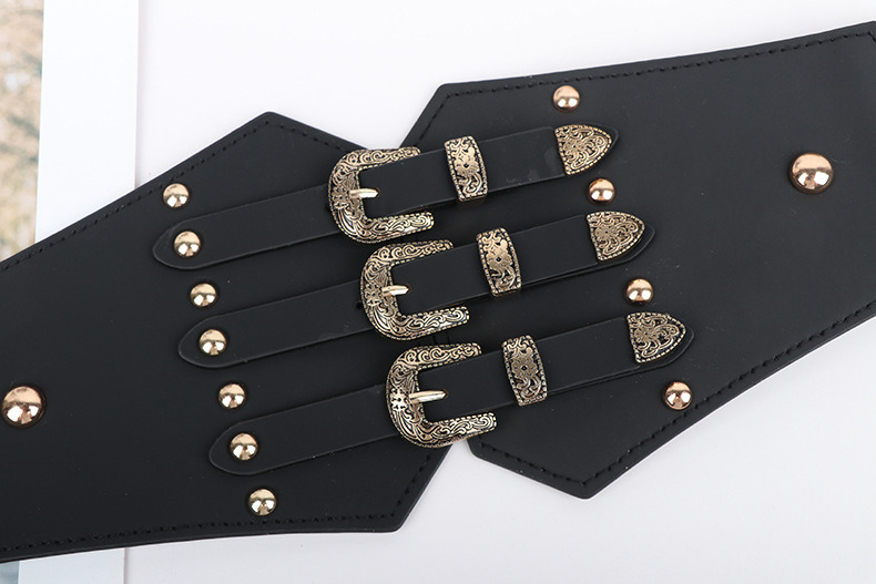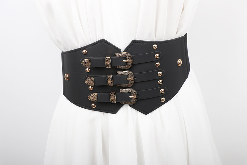 3点セットのボタンのウエストシールとシャツの装飾ダウンジャケットの女性のテンションリベットのウエスト幅ベルトの女性のベルト