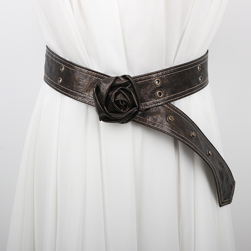 花のベルトの新型のレトロなバラのファッション的な腰の封のデザイン感の暗い茶色の装飾のベルトはワンピースを配合します。