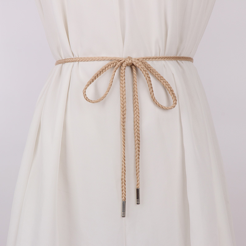 ベルトを編む女性の飾りの小さい革のひもの数珠のシンプルな腰のひもの百合はワンピースのスカートの腰のチェーンのファッションのスカートのベルトを配合します。