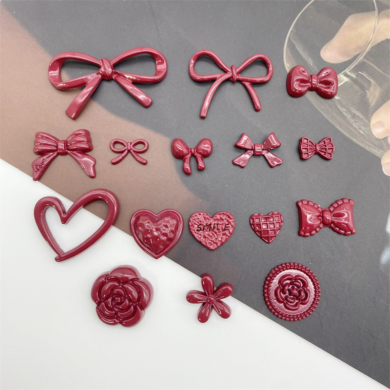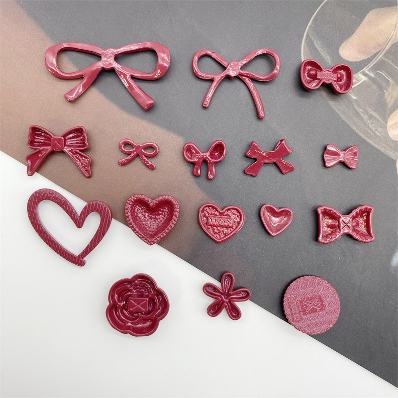 高級感安可拉紅合金アクセサリーアクセサリー気質酒紅蝶結び花パッチクリップ髪飾り材料