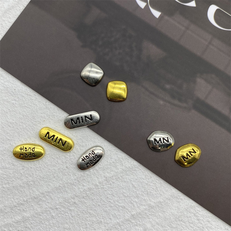 シンプルなレトロなメッキ文字合金ウエハDIYヘアクリップ携帯ケース金属パッチ部品材料