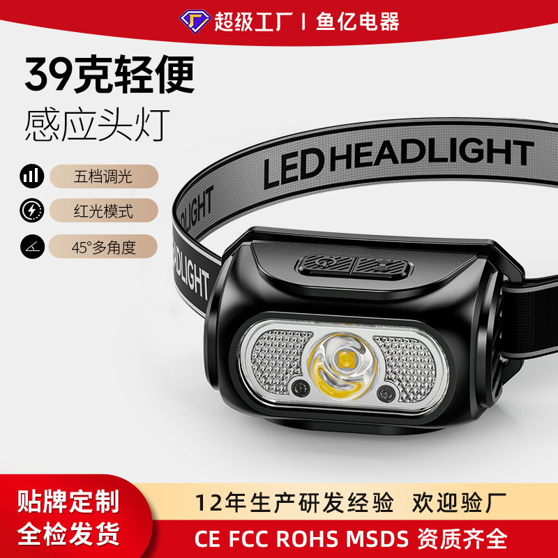 誘導ヘッドライトusb充電led防身頭戴式強光夜釣り小ヘッドライト屋外知能ヘッドライト