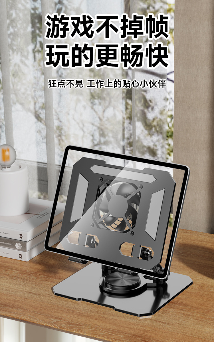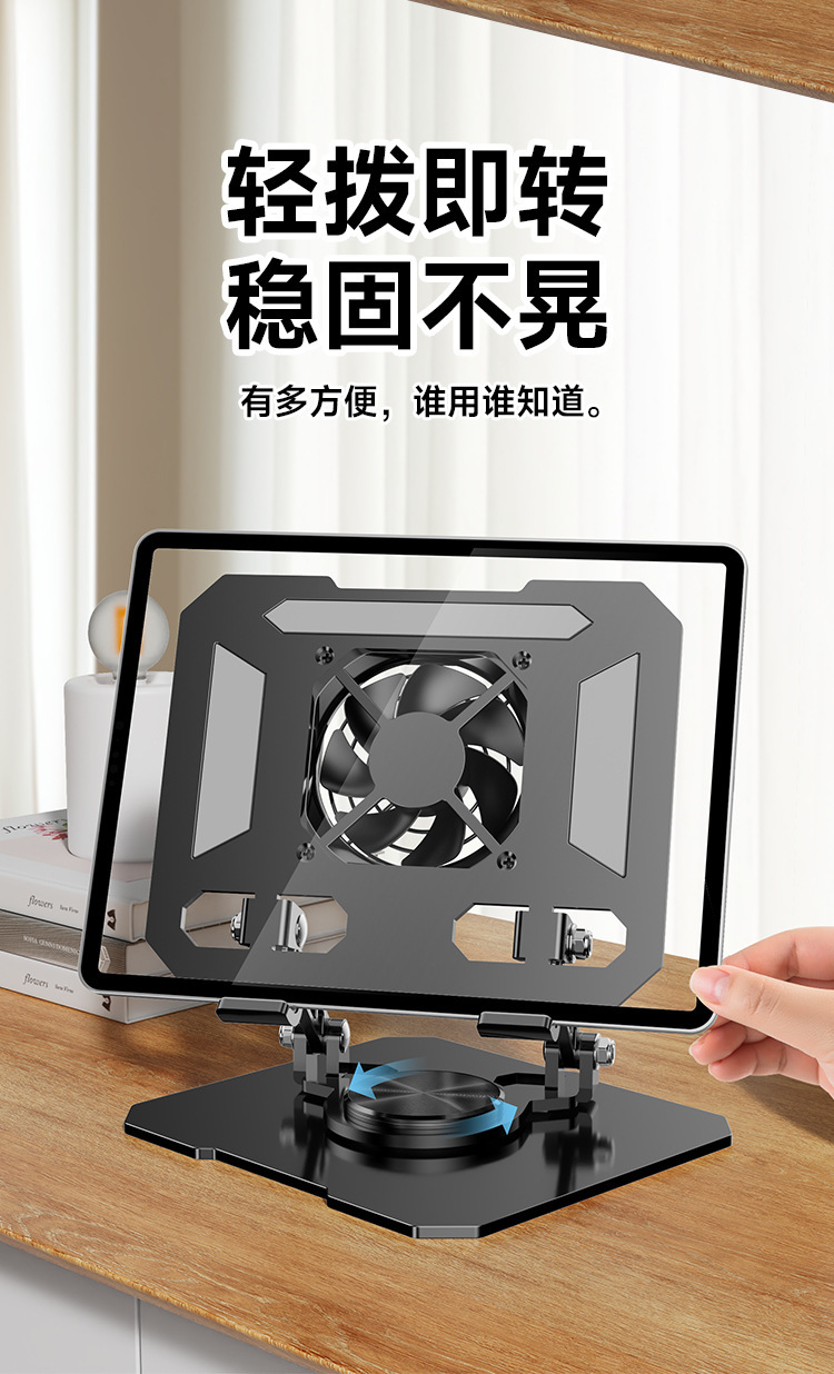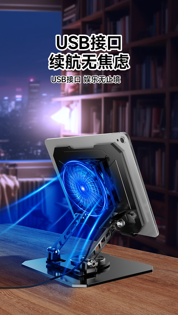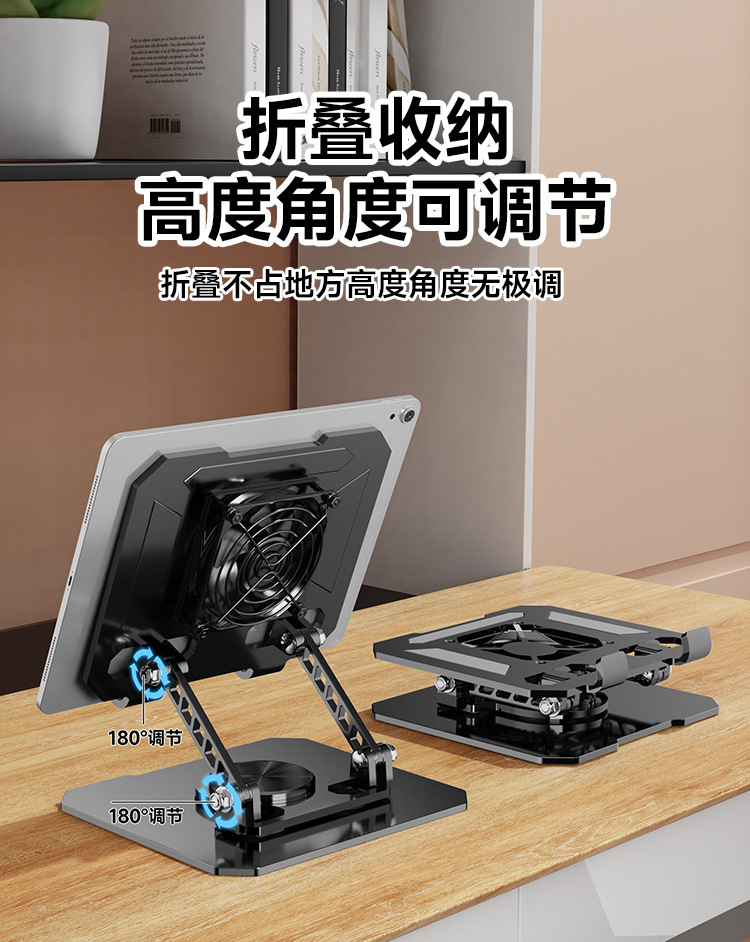 デスクトップスタンド360 ° 調整可能な回転式折りたたみ式放熱ファン一体型メタルポータブルタブレットスタンド