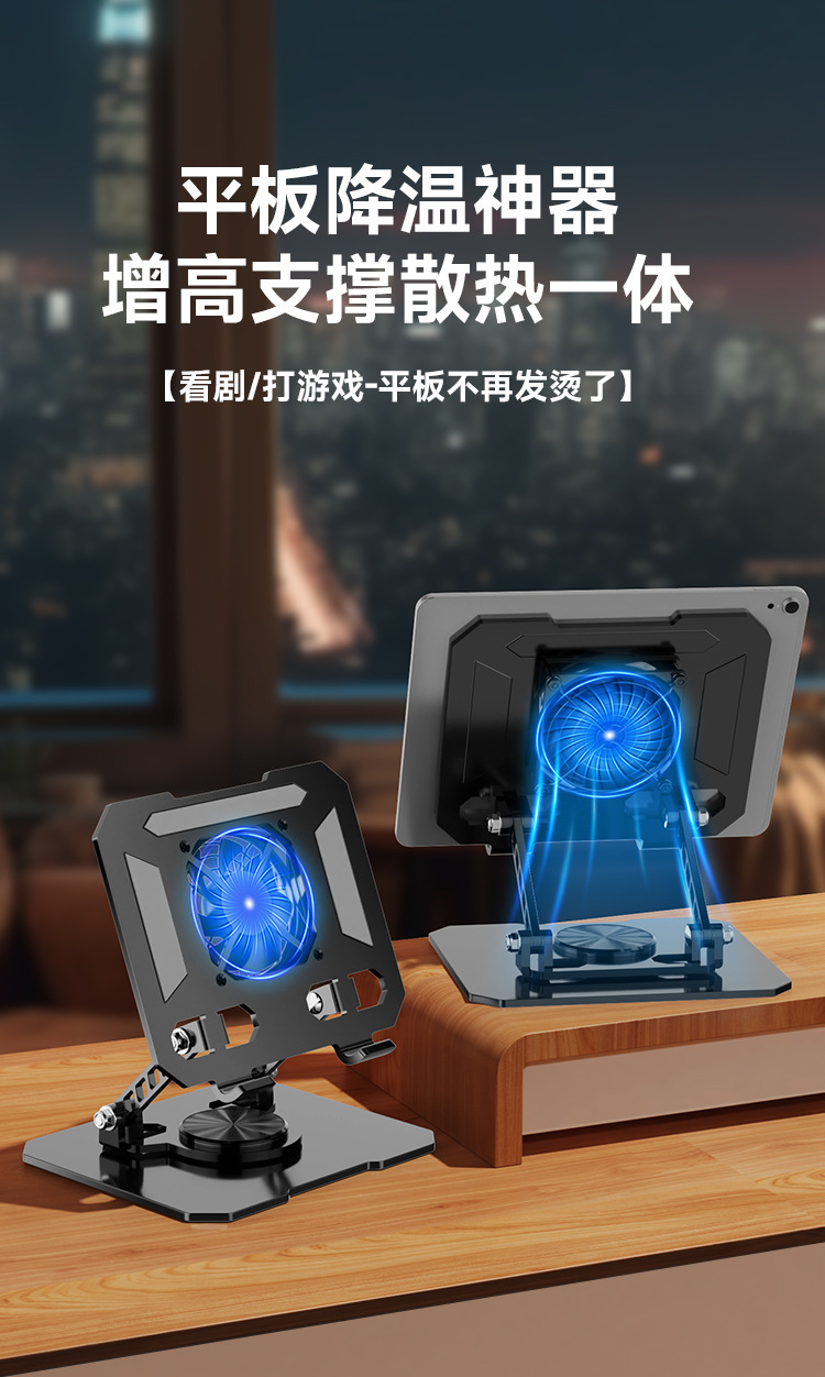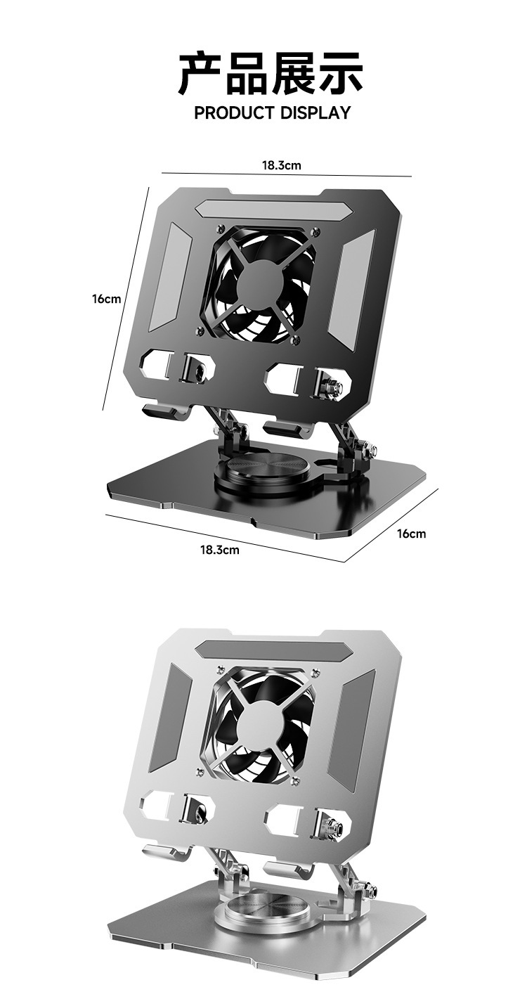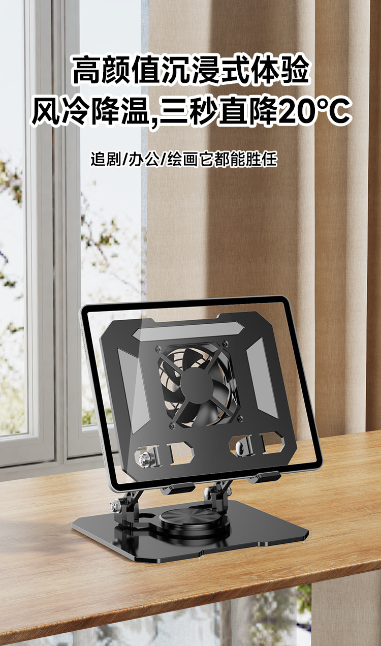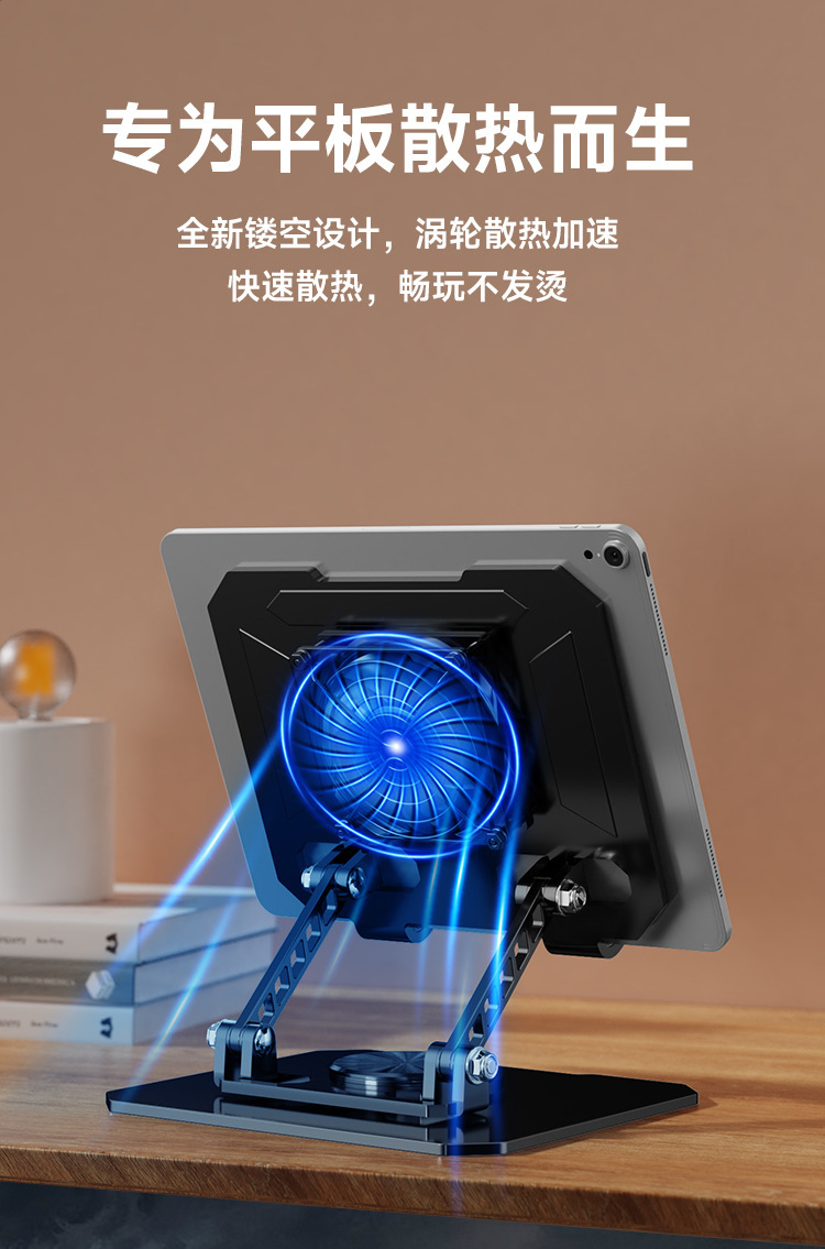 デスクトップスタンド360 ° 調整可能な回転式折りたたみ式放熱ファン一体型メタルポータブルタブレットスタンド