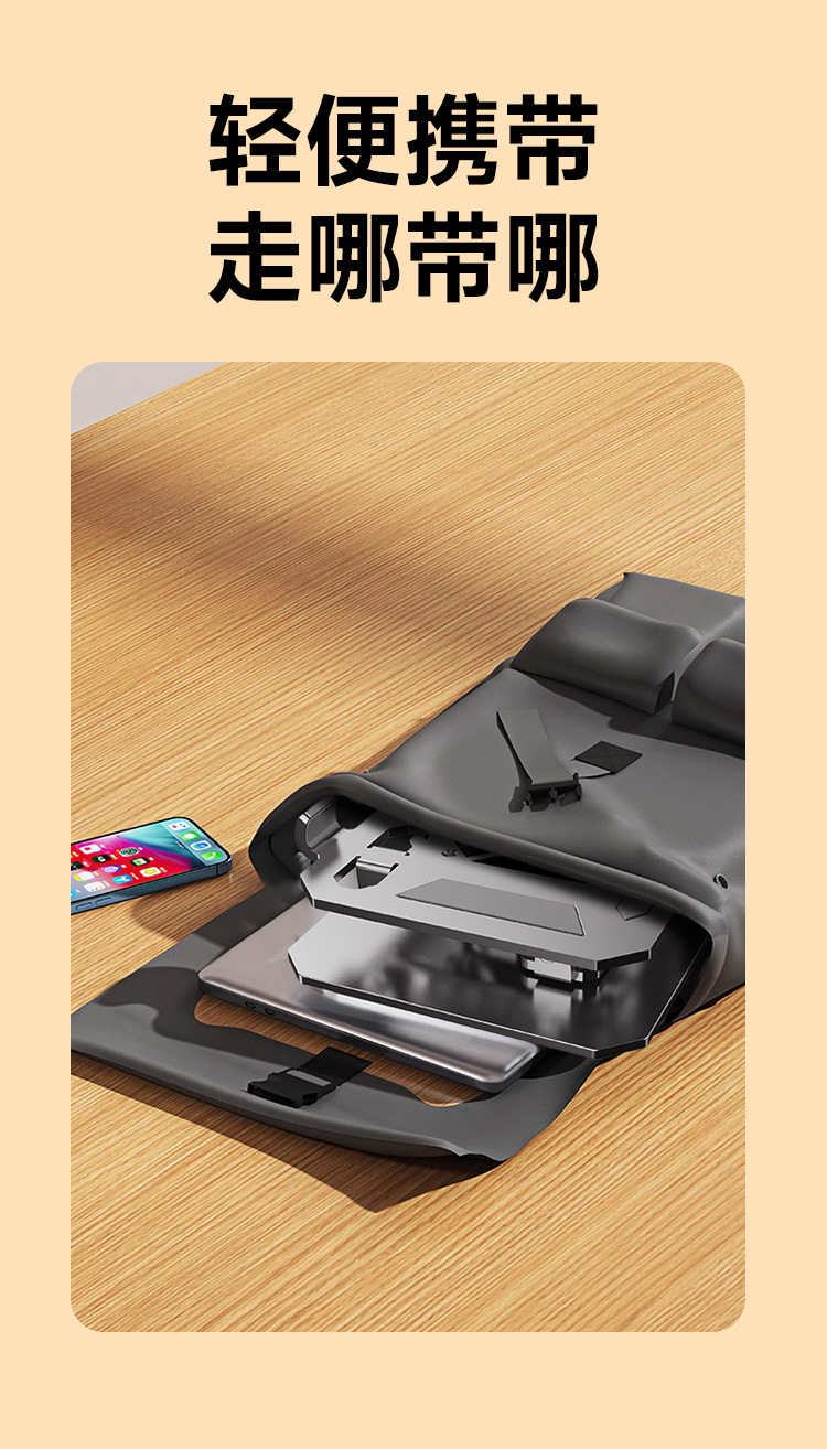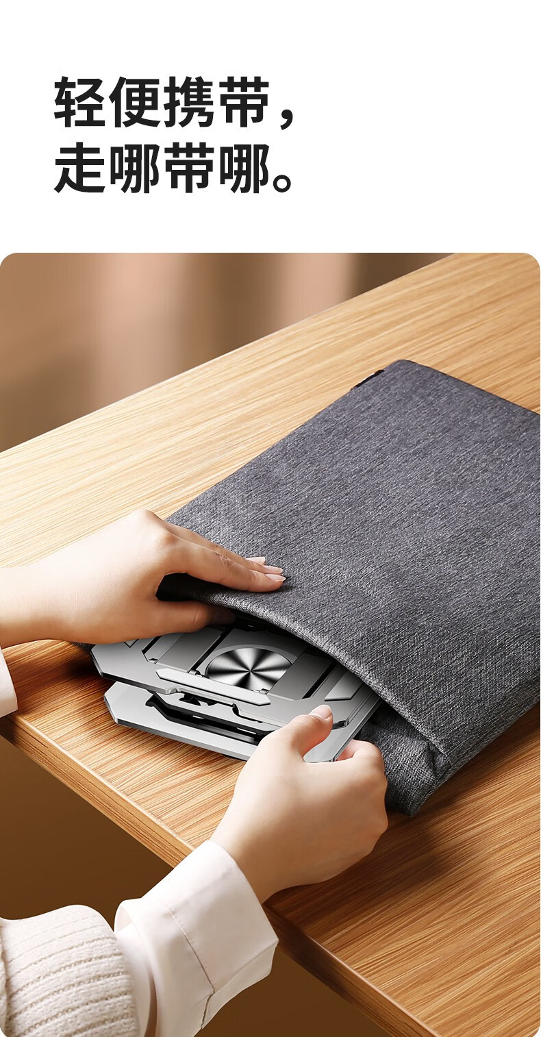 ノートパソコン折りたたみ式冷却アルミニウム合金スタンド、角度調整可能、静音冷却、滑り止め設計